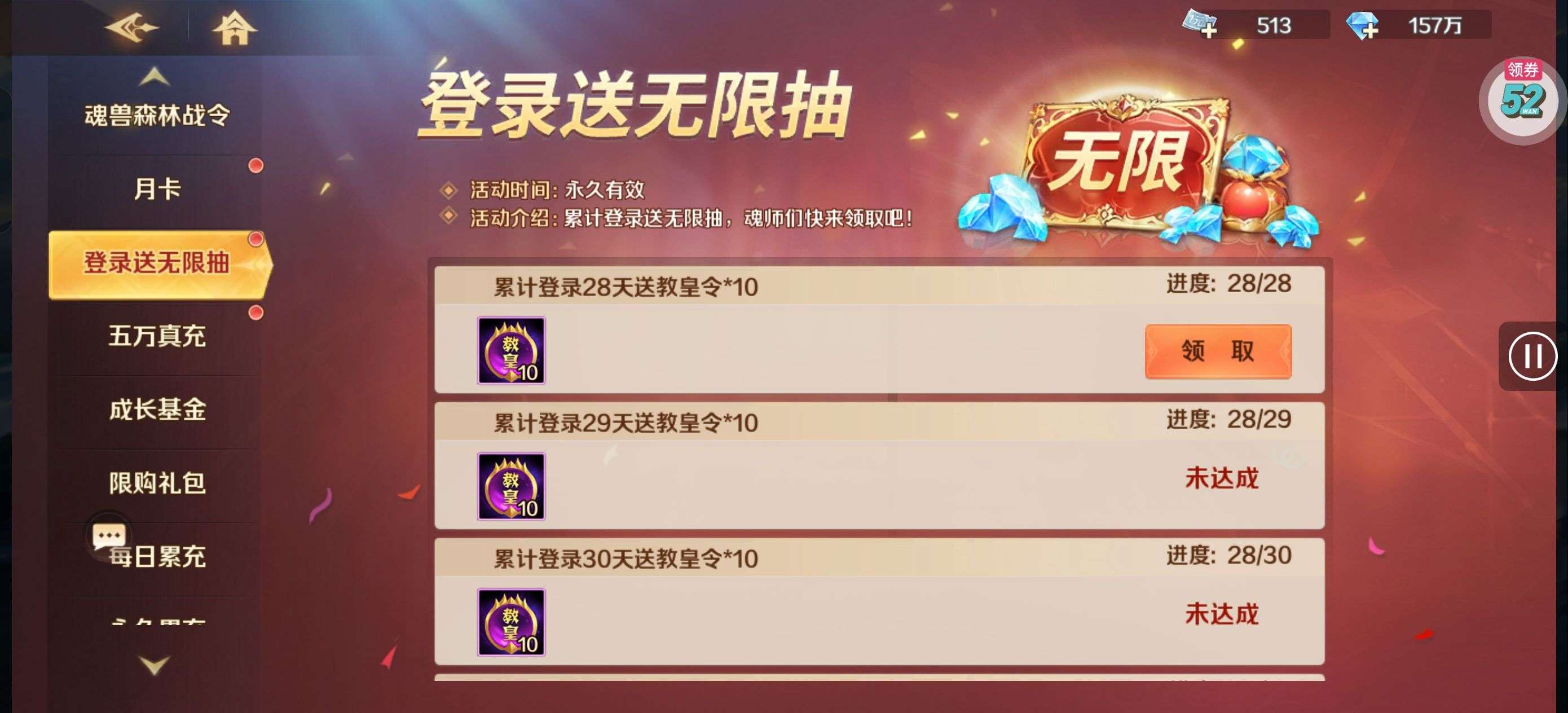 魂晶*888,魂师召唤券*10,武魂水晶*5(每个账号限领一次)