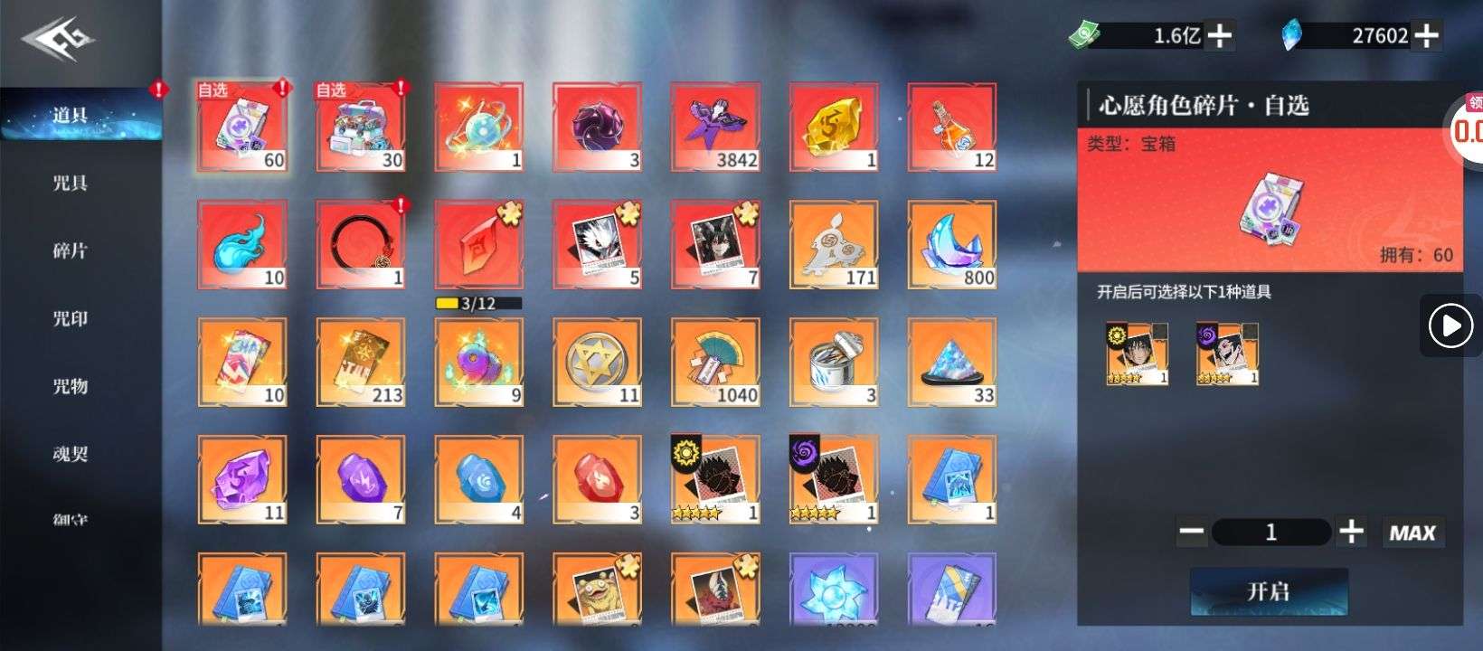 可升12星甚尔,号里还有170多抽心愿券,100抽阵营,没时间玩,随便出