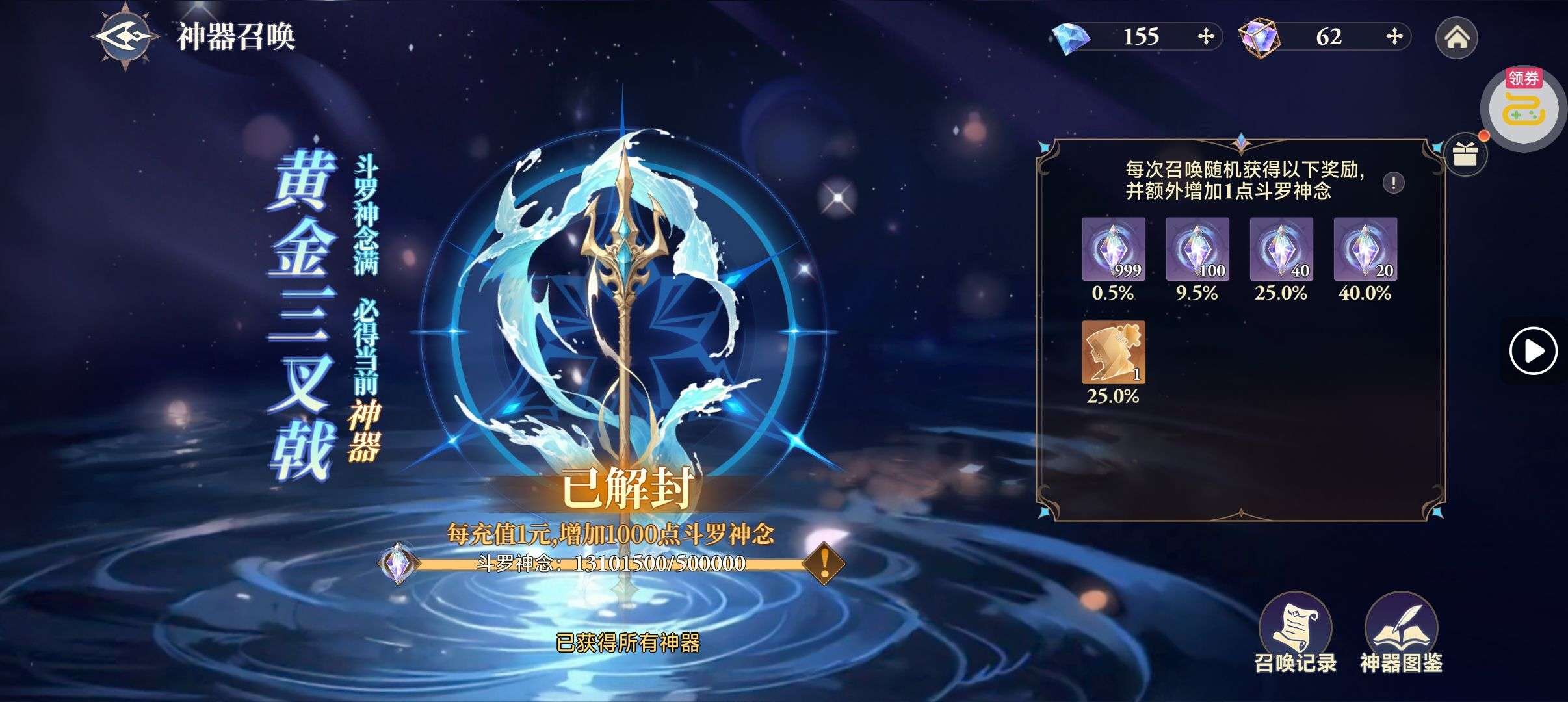 强化药剂*200、钻石招募币*20、金币*50W(每个账号限领一次)