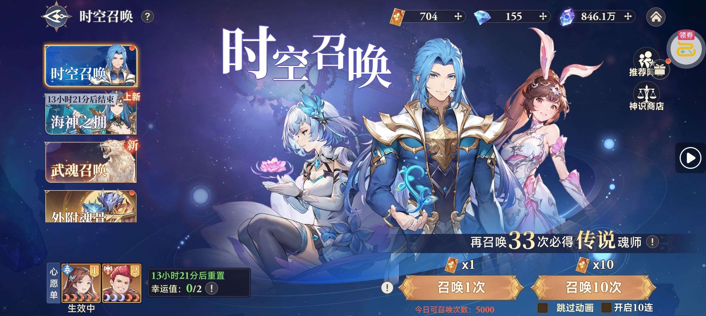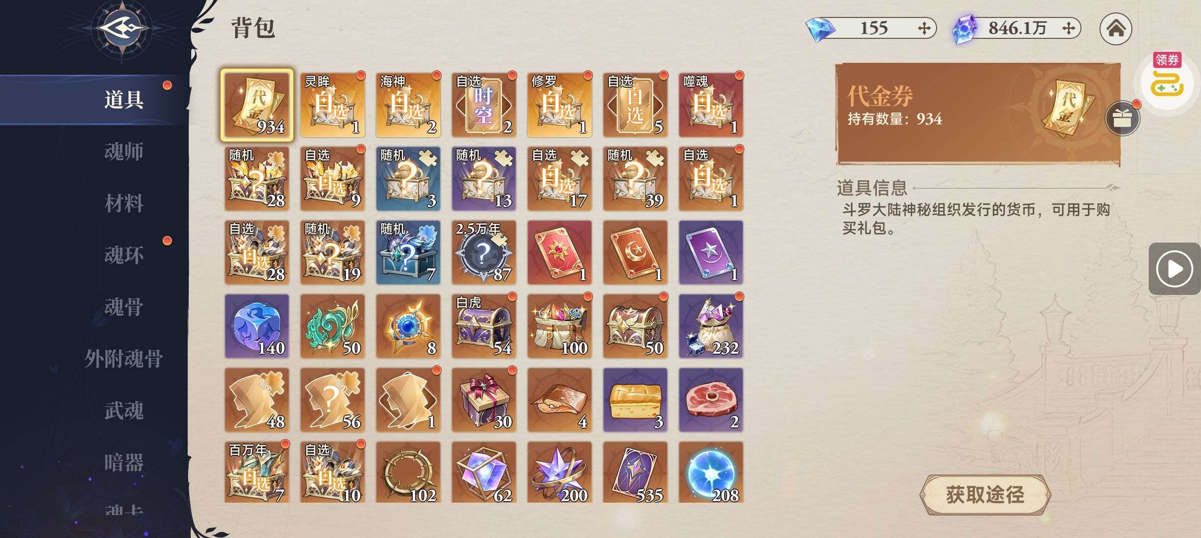 魂晶*888,魂师召唤券*10,武魂水晶*5(每个账号限领一次)
