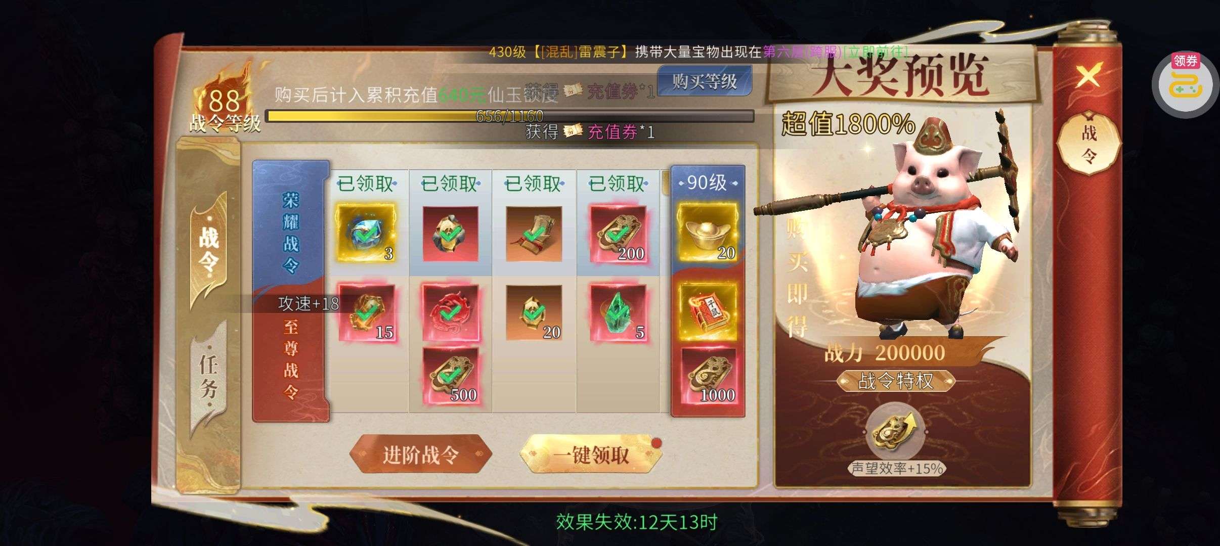 强化药剂*200、钻石招募币*20、金币*50W(每个账号限领一次)