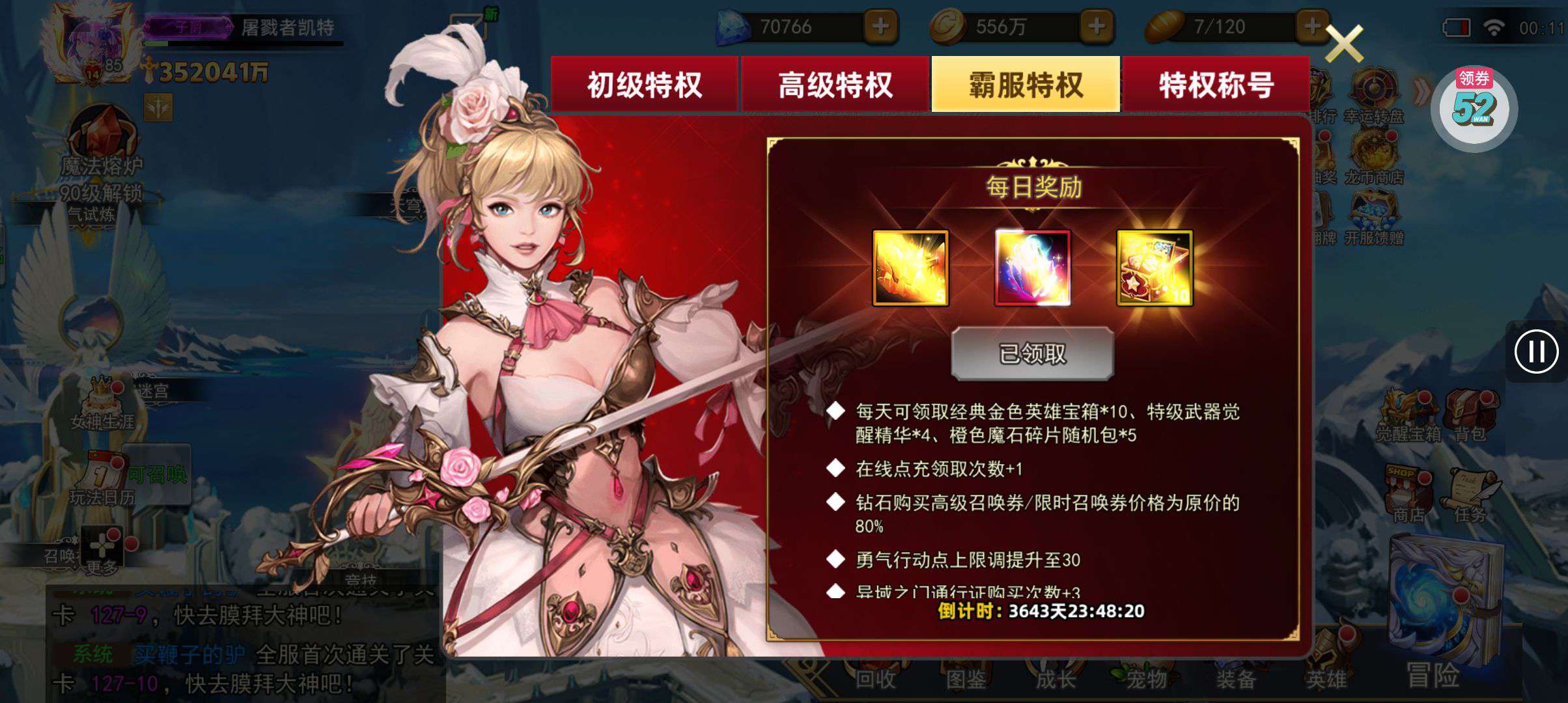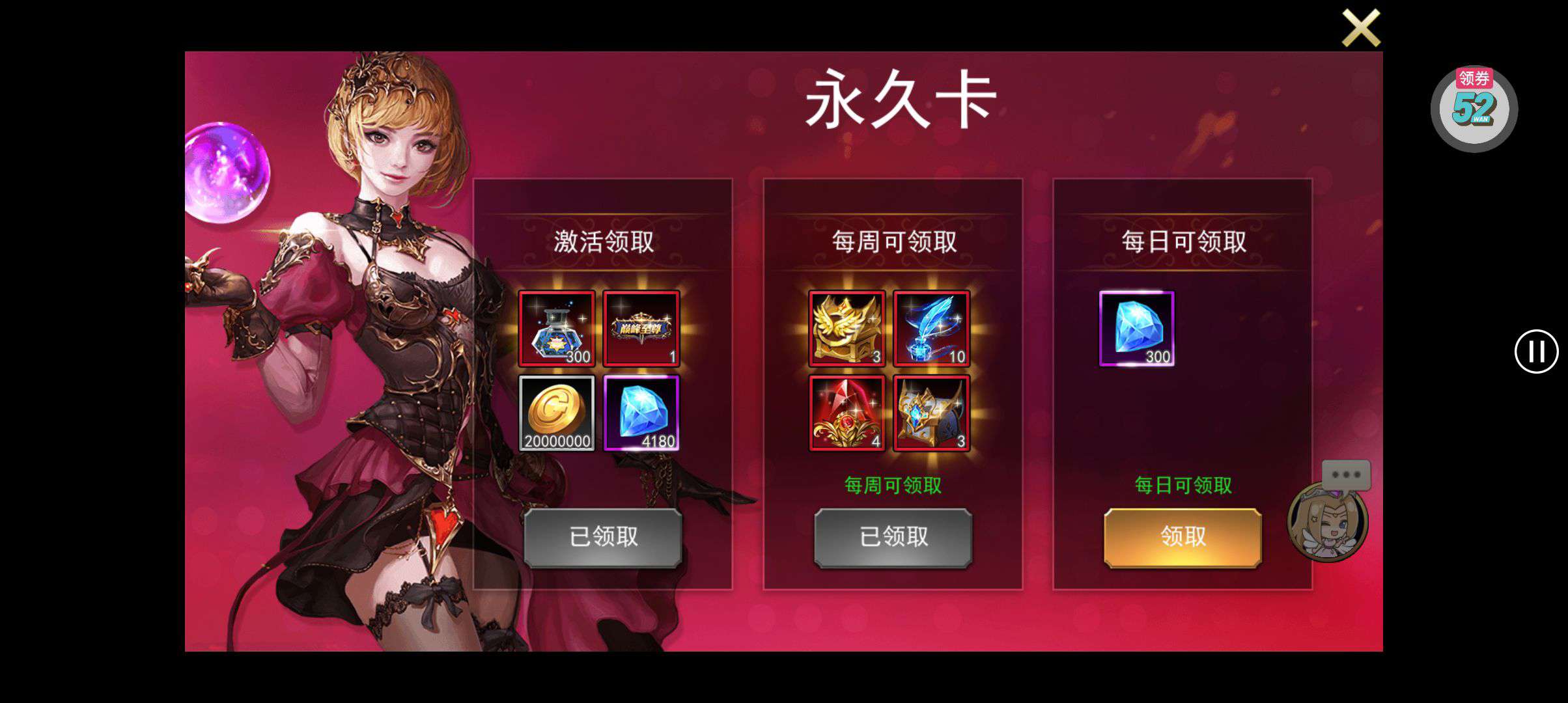 强化药剂*200、钻石招募币*20、金币*50W(每个账号限领一次)