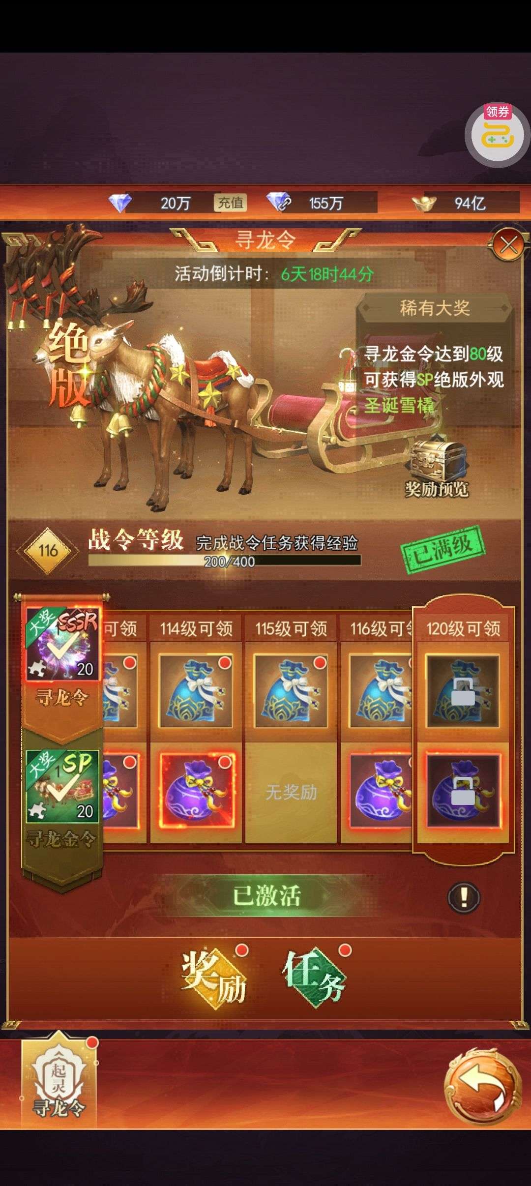 强化药剂*200、钻石招募币*20、金币*50W(每个账号限领一次)