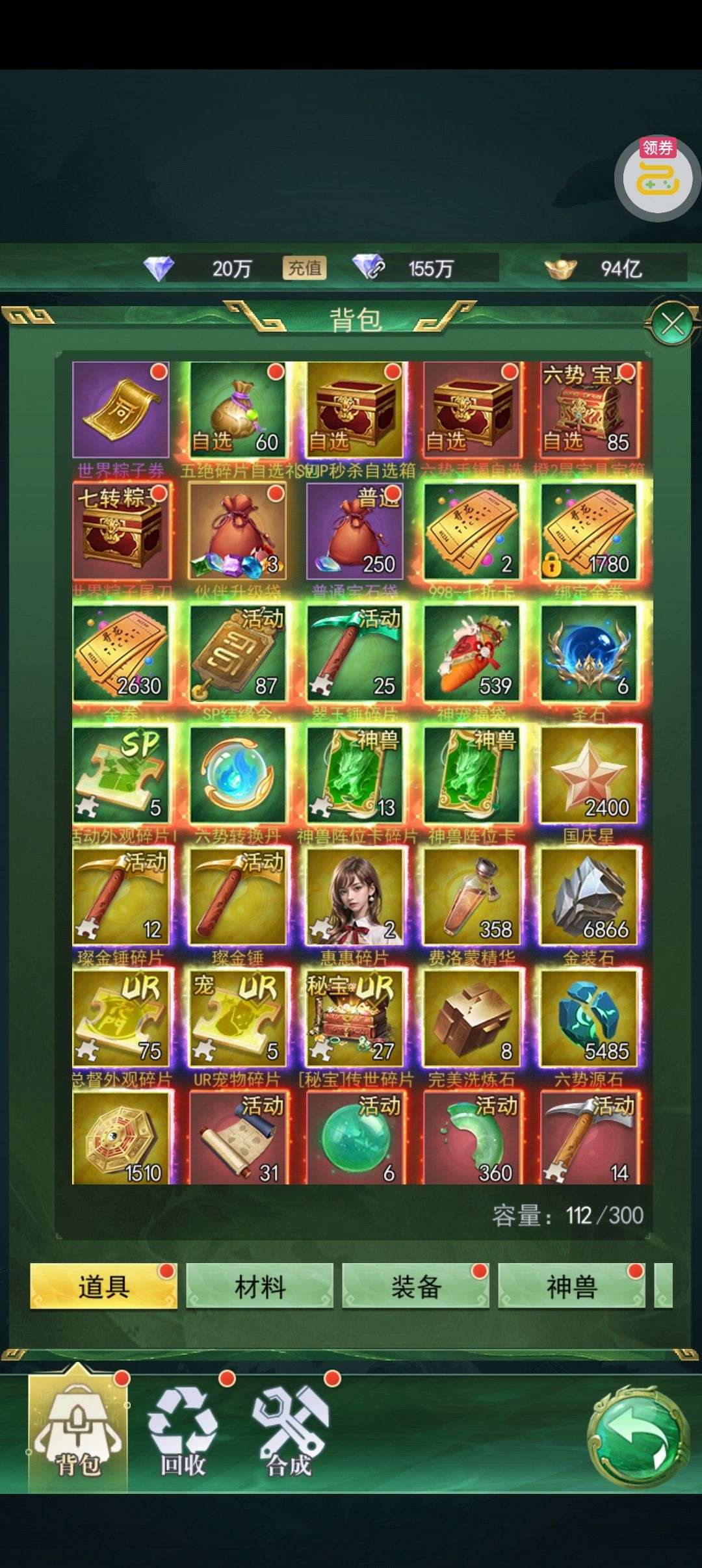高级寻仙佩*10(每个账号限领一次)