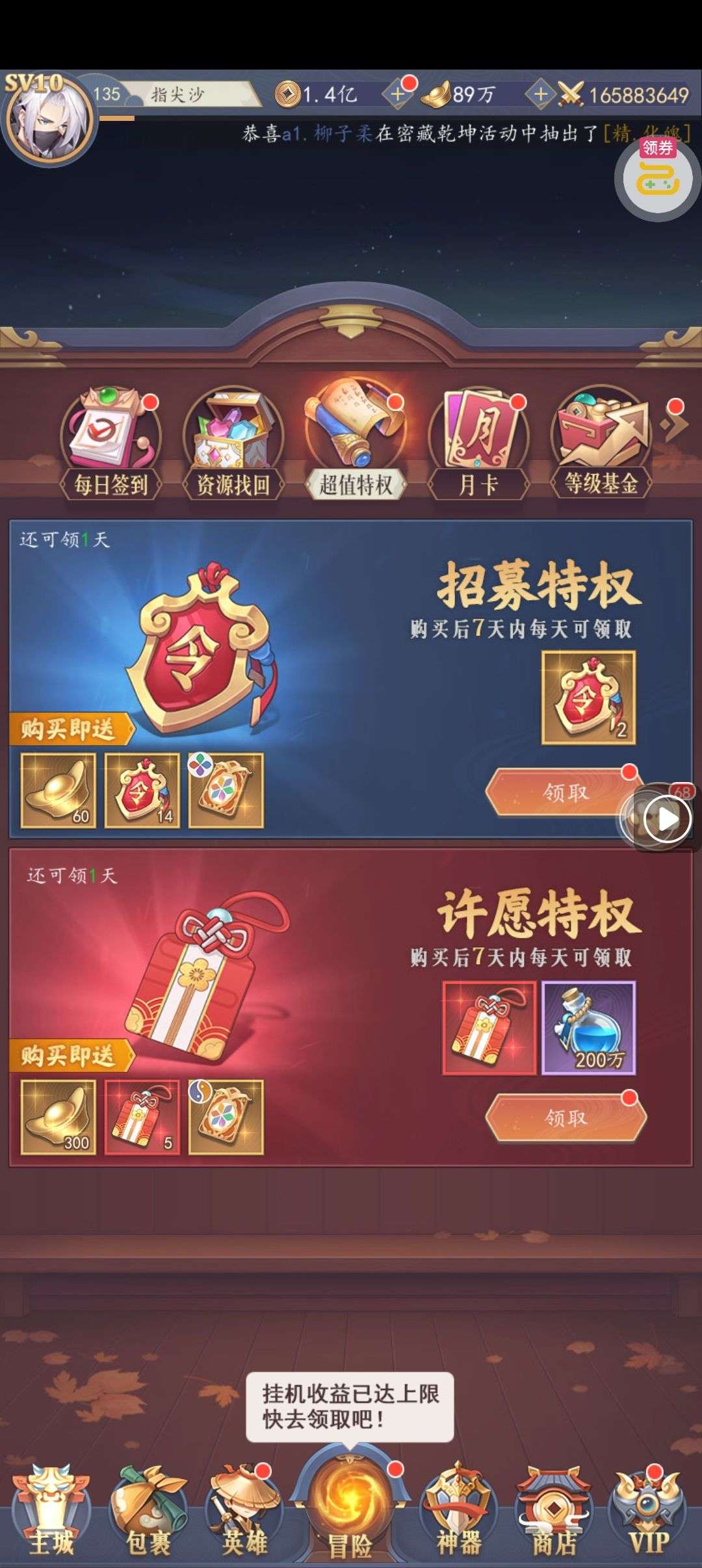 高级招募令*5、武将经验500000、铜钱100W(每个账号限领一次)