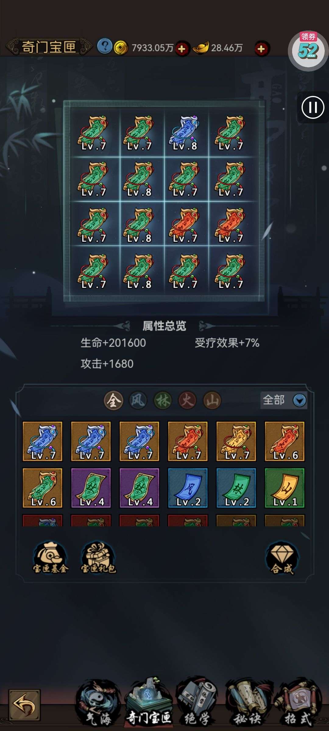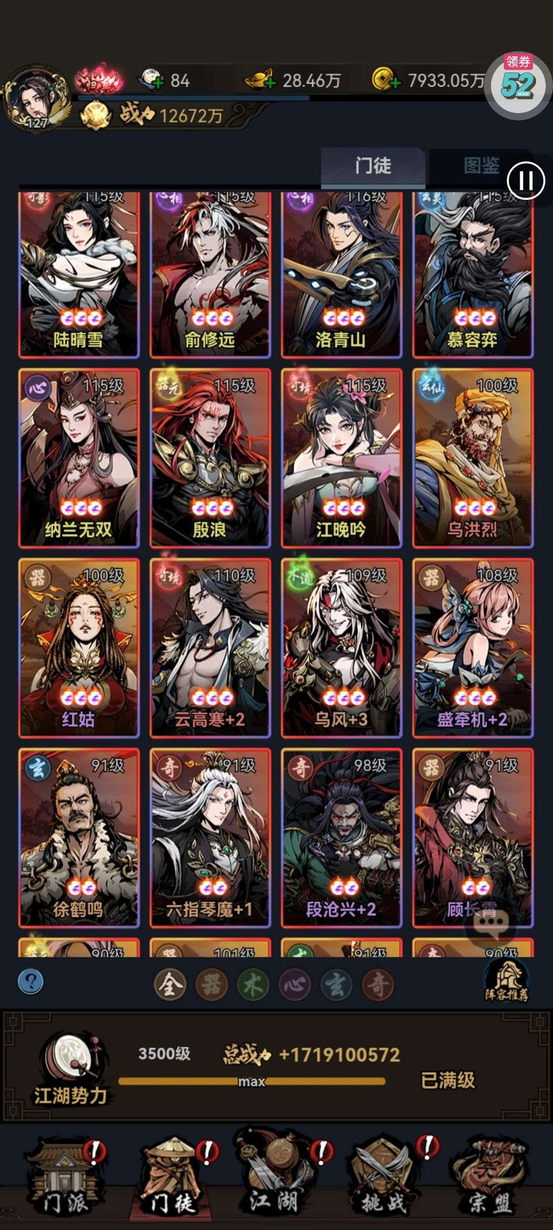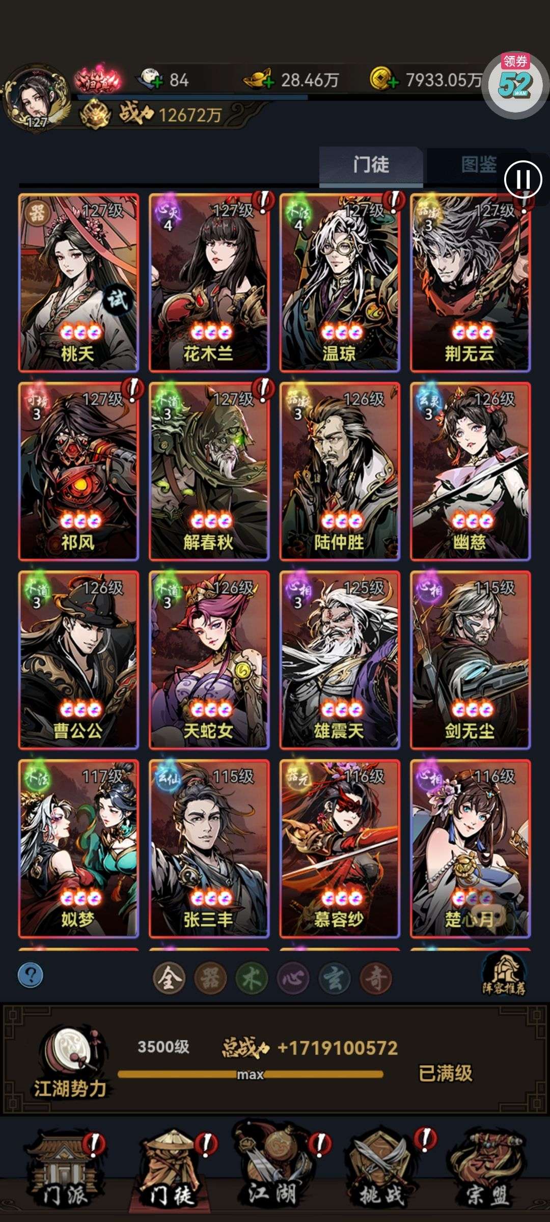 所有人物能满的基本全满,就差孙尚香,曹操,关羽三个限定没拉满,还有5800的代金,便宜卖了