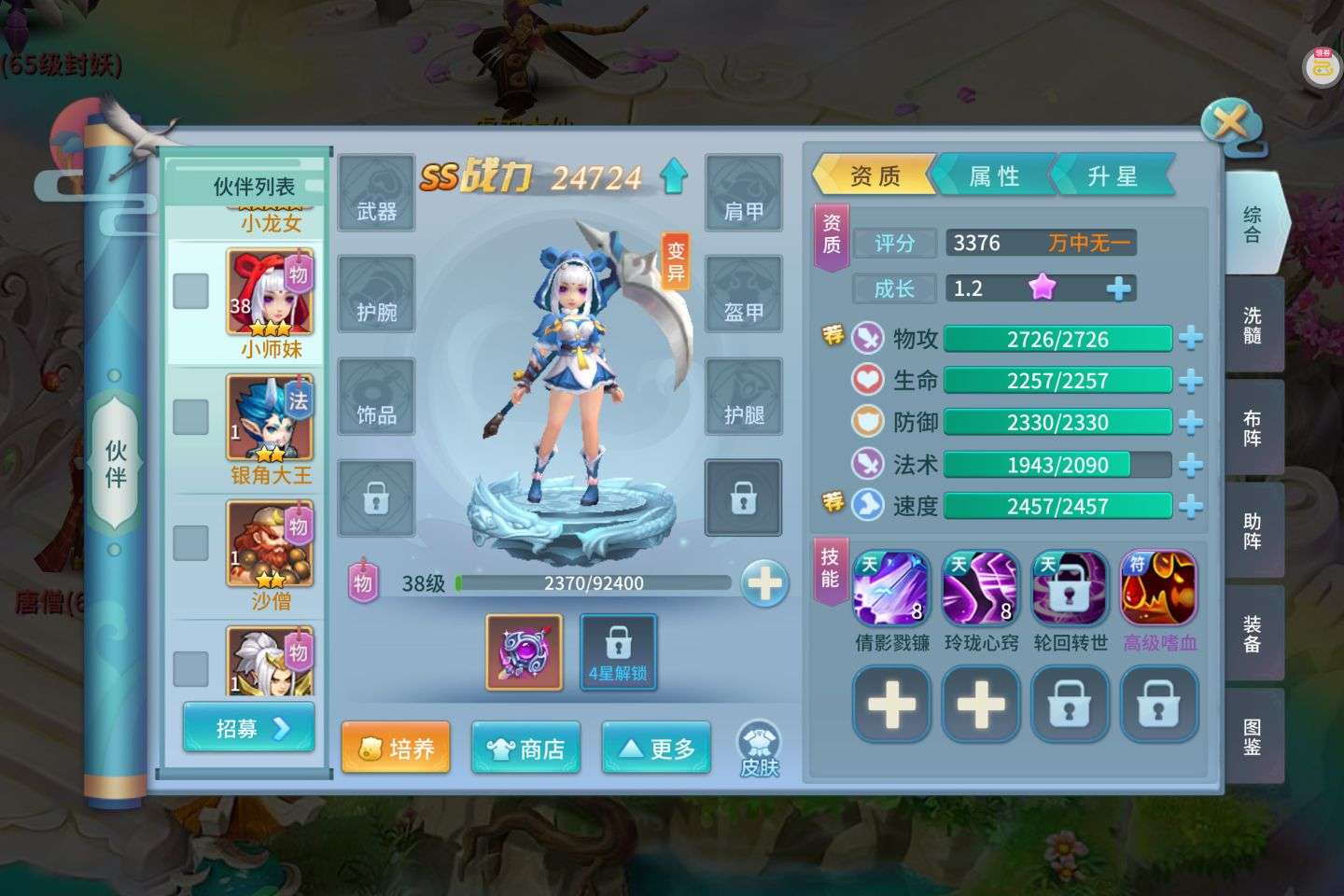 完美打书,伙伴洗出变异+技能栏!