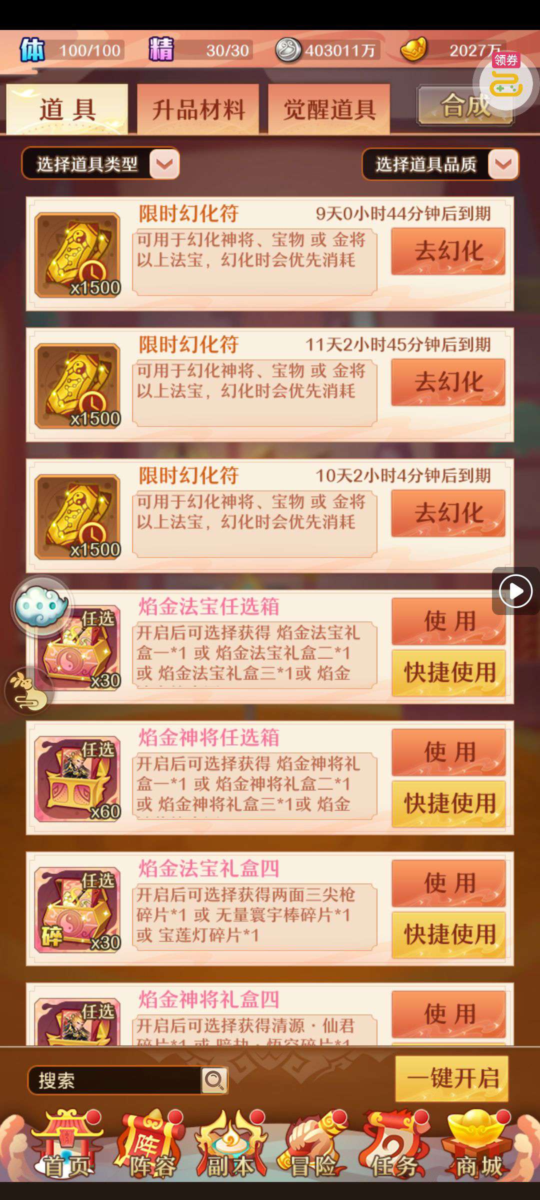 强化药剂*200、钻石招募币*20、金币*50W(每个账号限领一次)