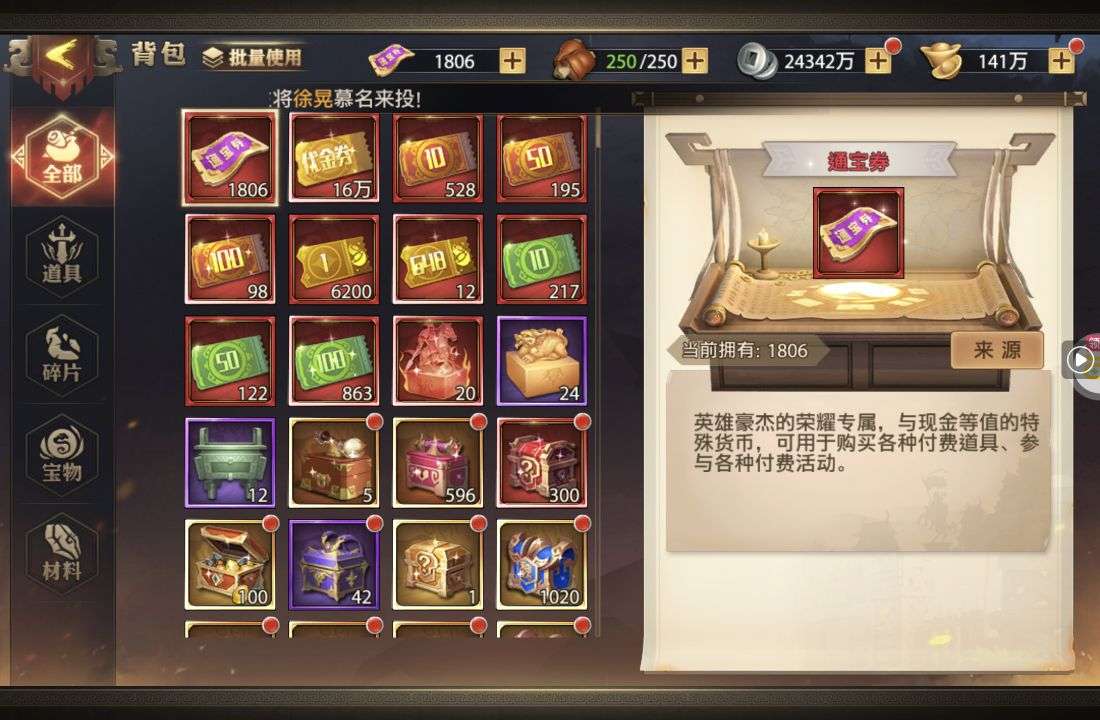 高级寻仙佩*10(每个账号限领一次)