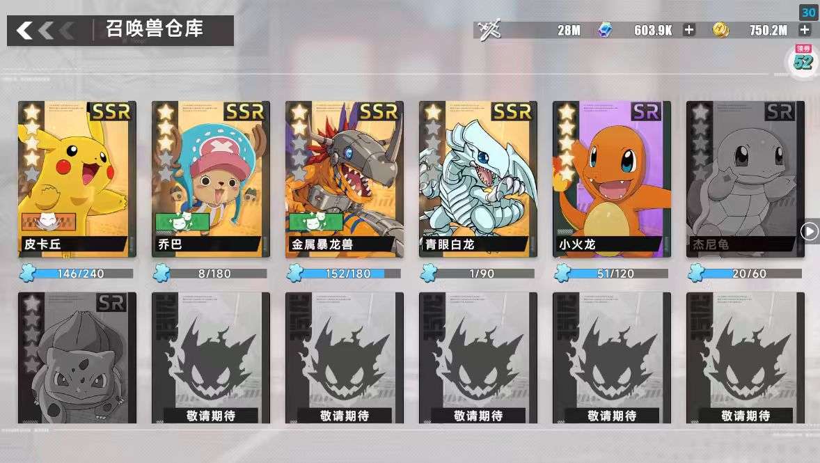 全部特权都开了,资源基本都留着没怎么用,有ssr+金木、saber、纳兹、亚里沙、路飞,和其他1000多ssr+碎片。超稀有自选也还在。神谕币9000多