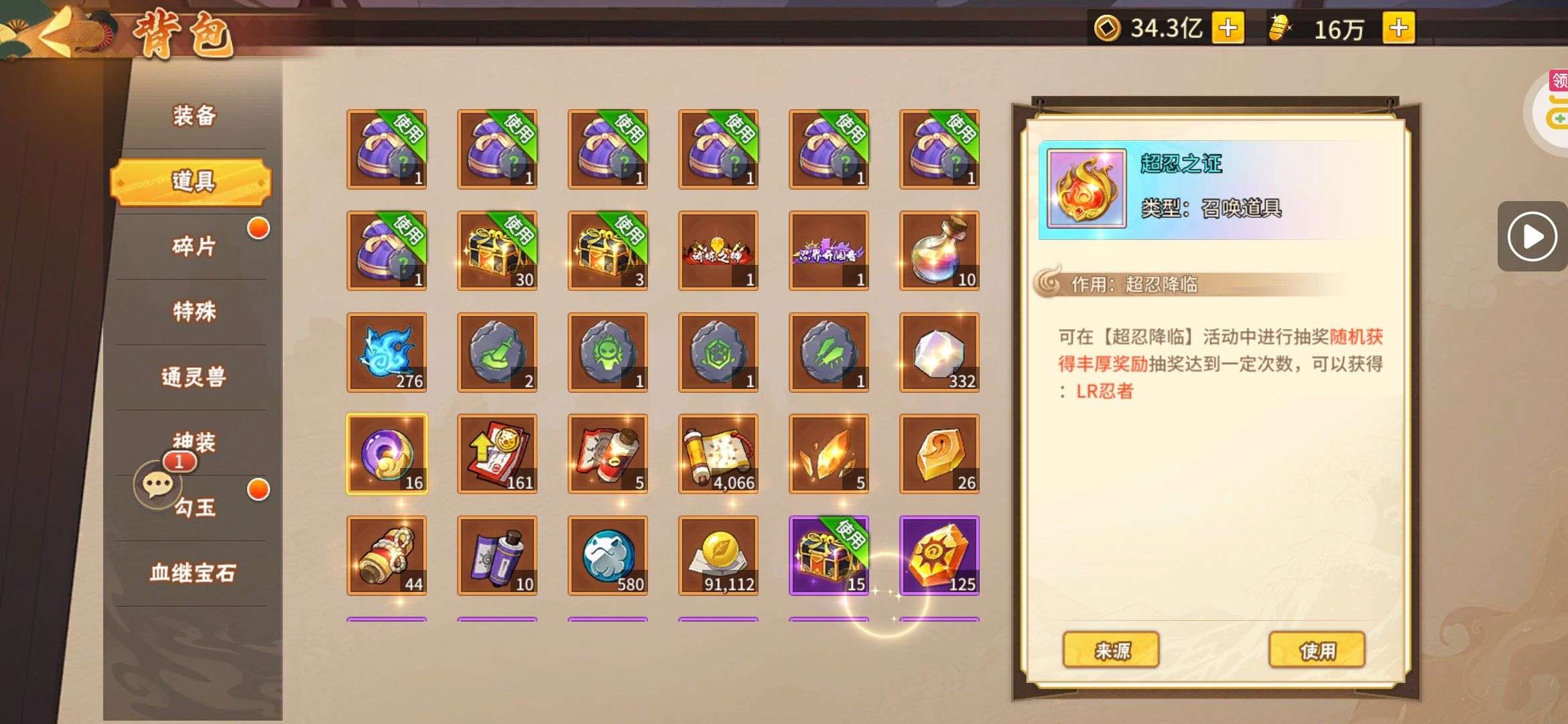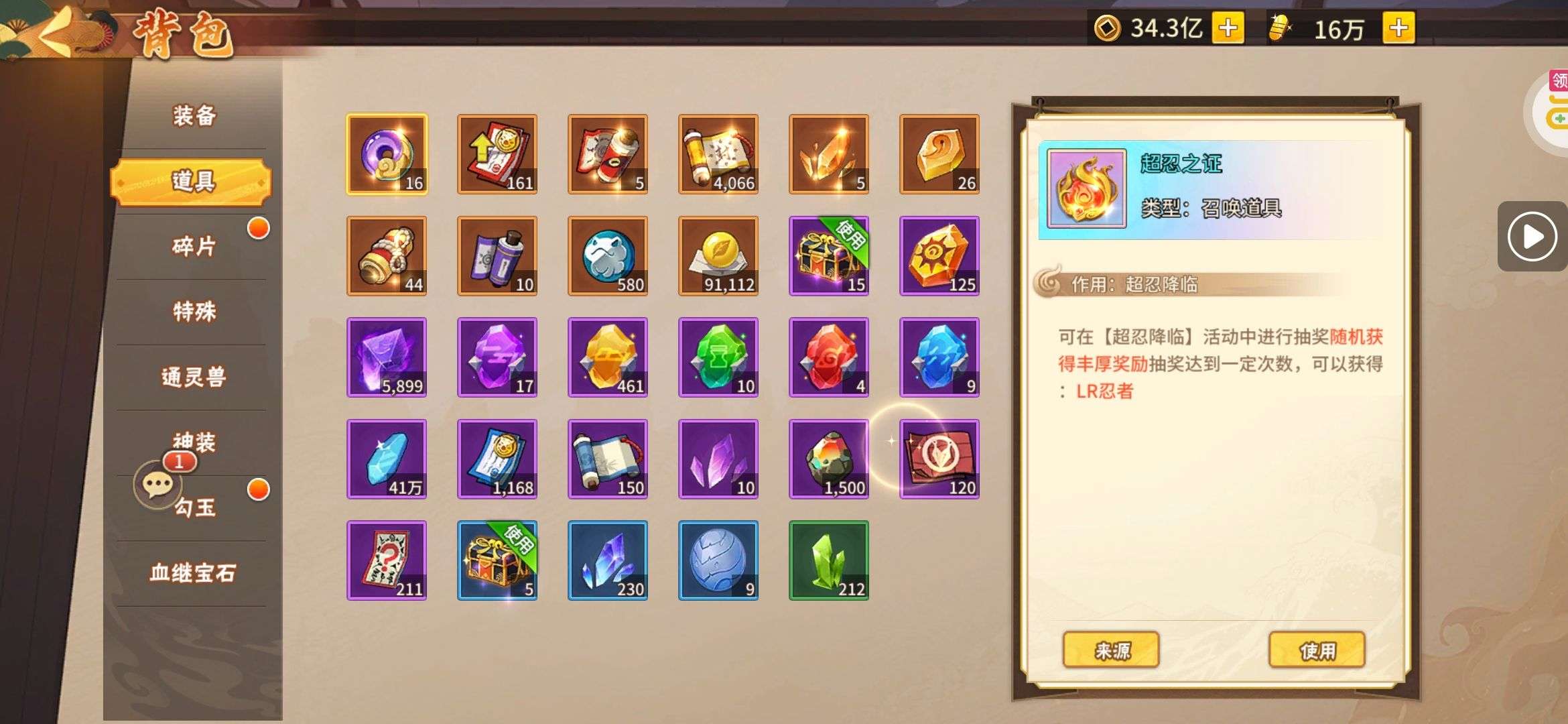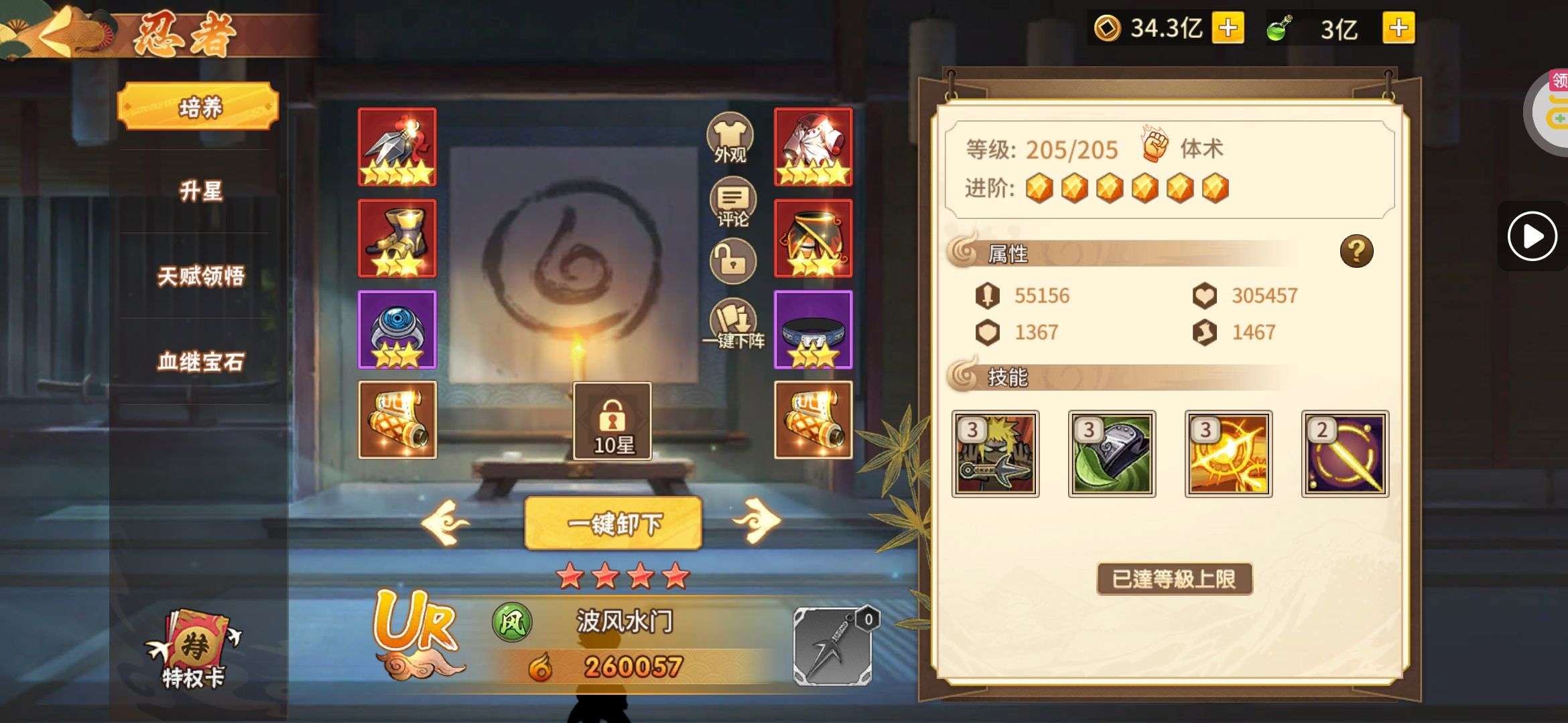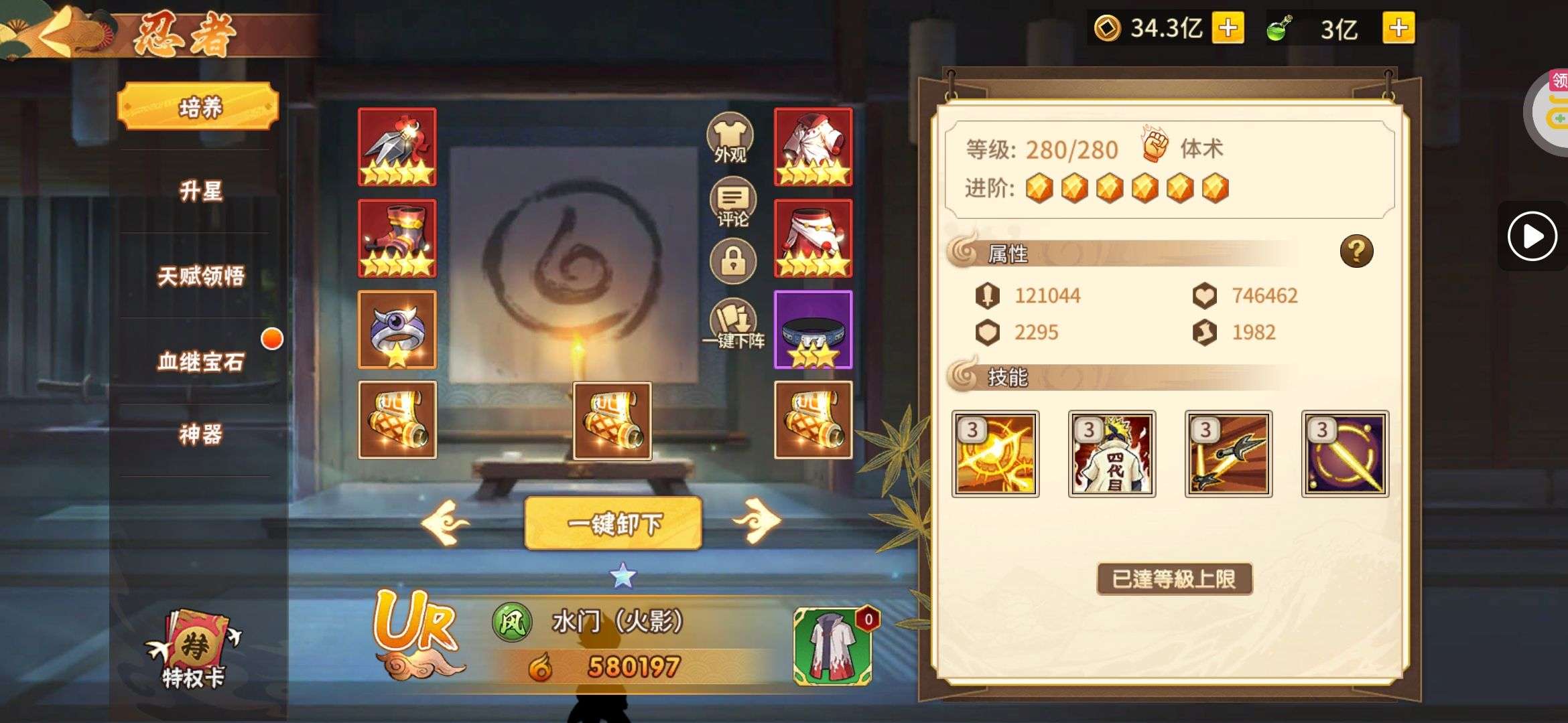 人物65级,战力高 ,装备齐全。好几个强力忍者,阵容成型了