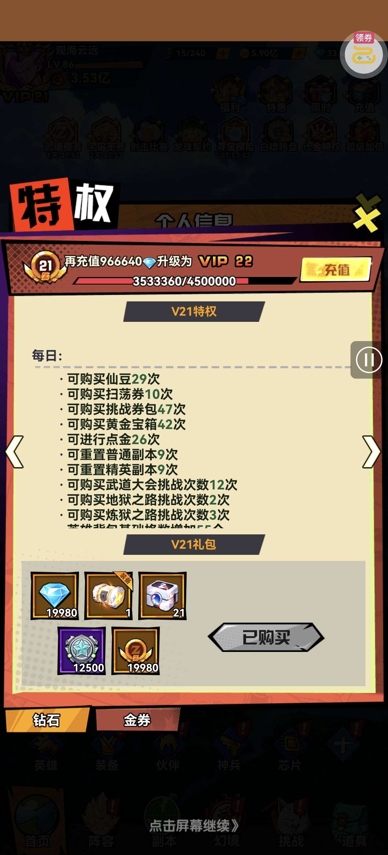 强化药剂*200、钻石招募币*20、金币*50W(每个账号限领一次)
