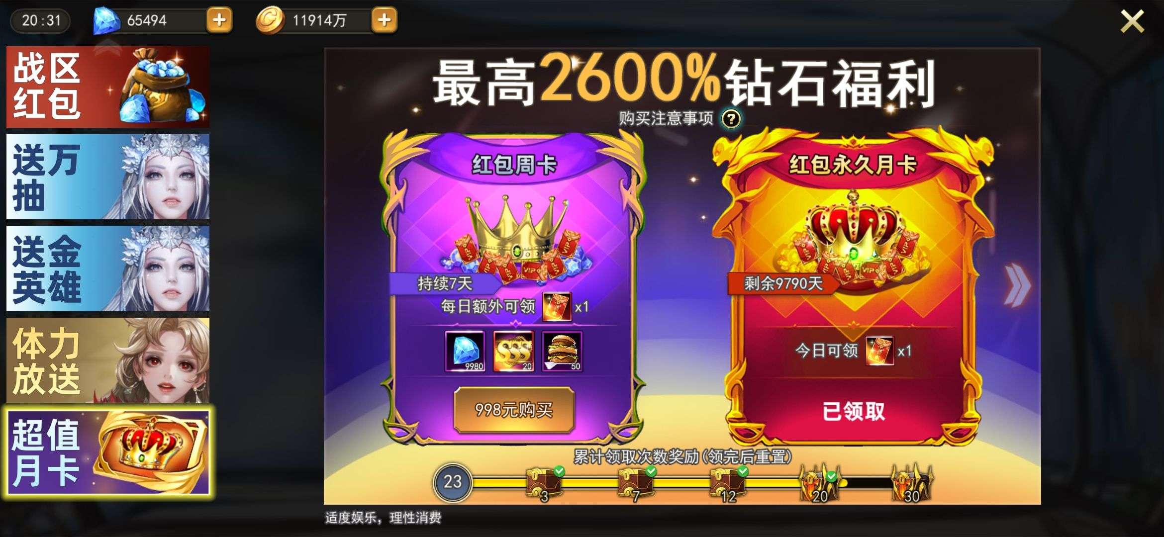 强化药剂*200、钻石招募币*20、金币*50W(每个账号限领一次)