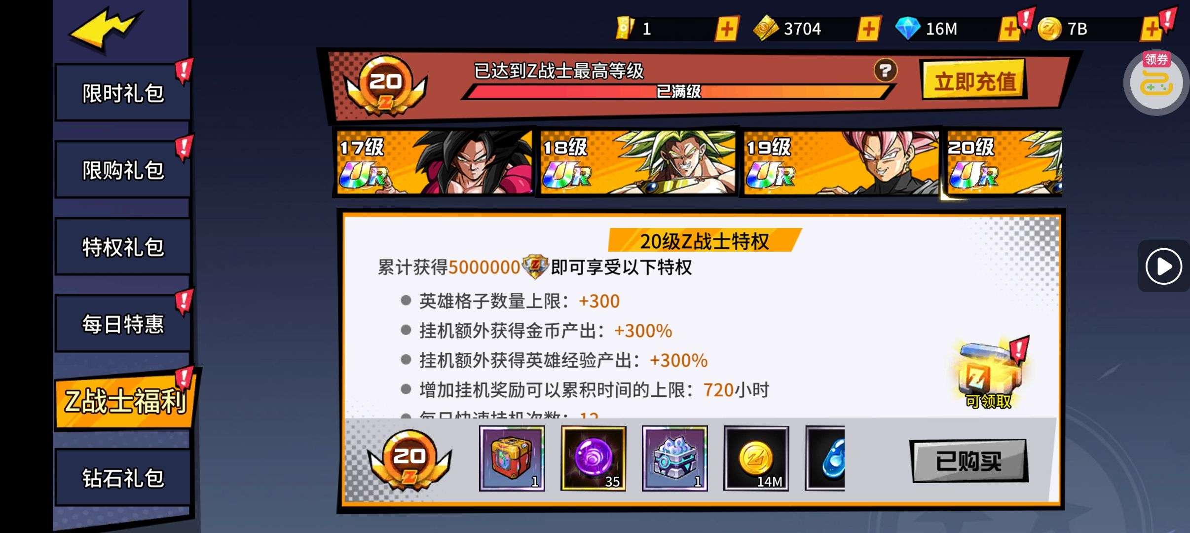 强化药剂*200、钻石招募币*20、金币*50W(每个账号限领一次)