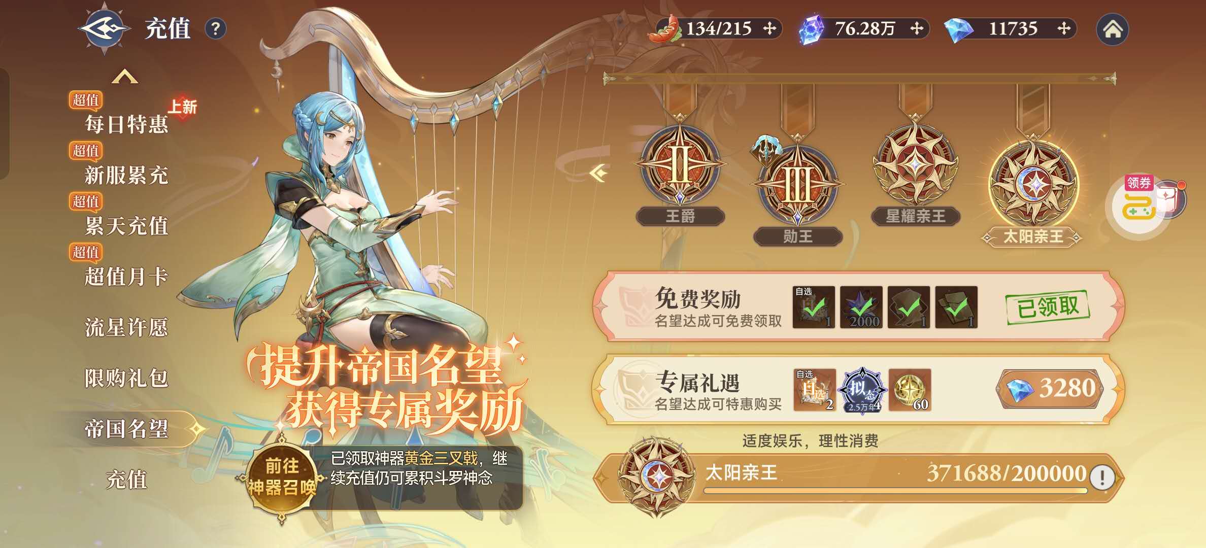 今天第七天破亿战力,大量材料装备和游戏特权,爽完可下手