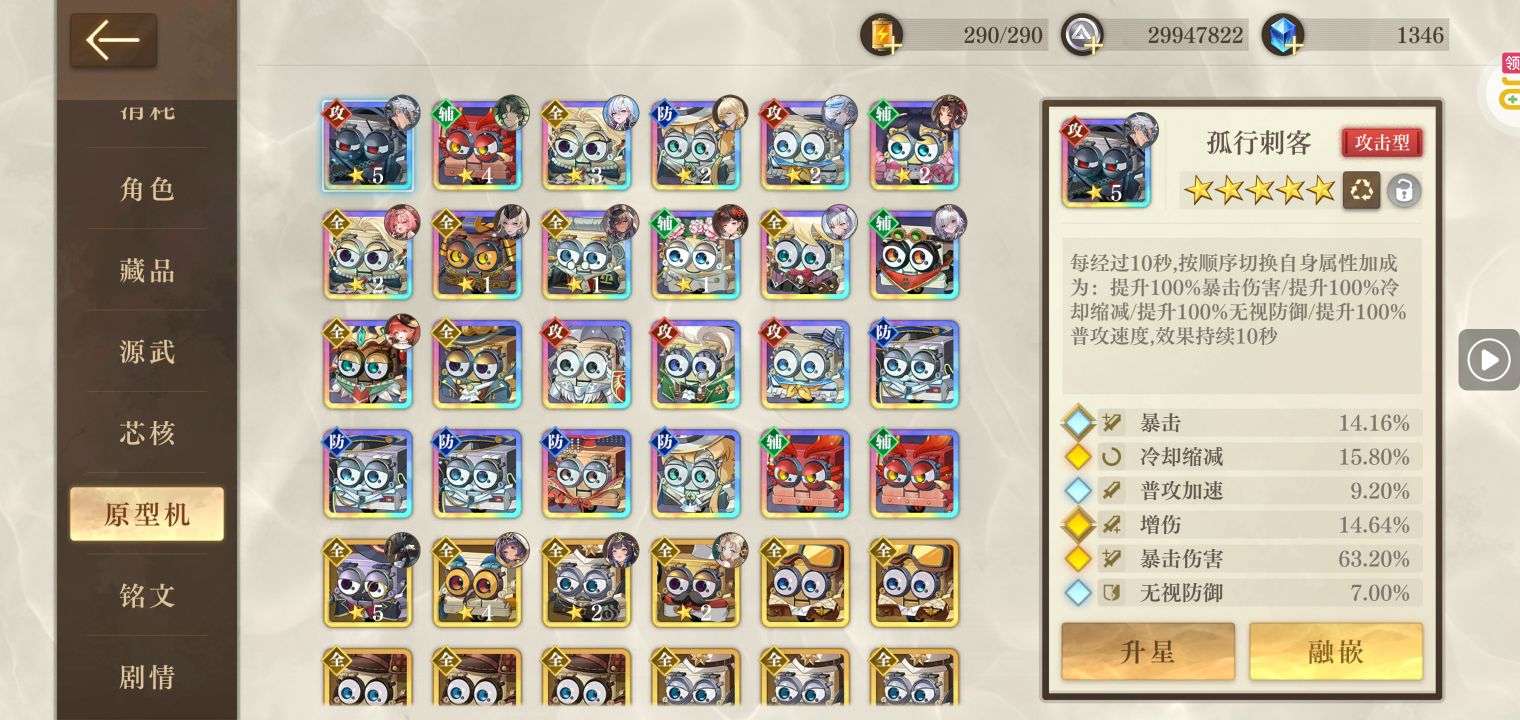 玩了一年多,全角色,大部分角色满星,有很多皮肤,还有非常多的资源