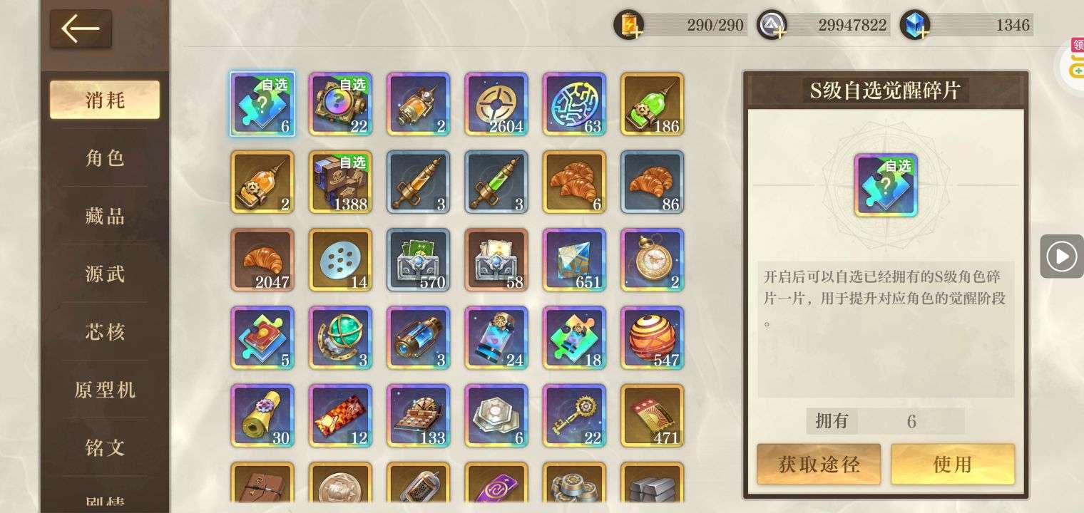 满觉醒全sp号,还剩不少钻石和黄水晶