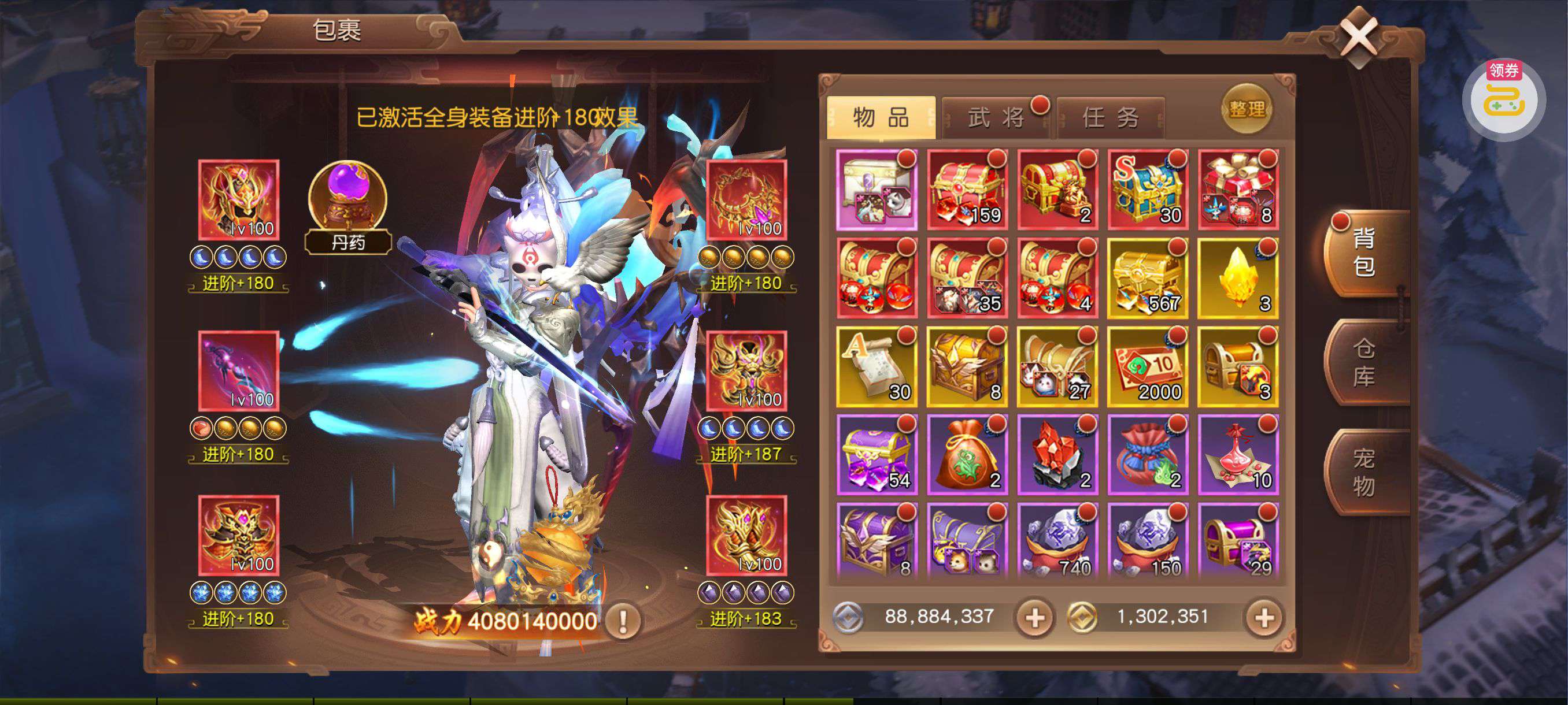 进阶丹*200,铜钱*100000,查克拉*100000(每个账号限领一次)