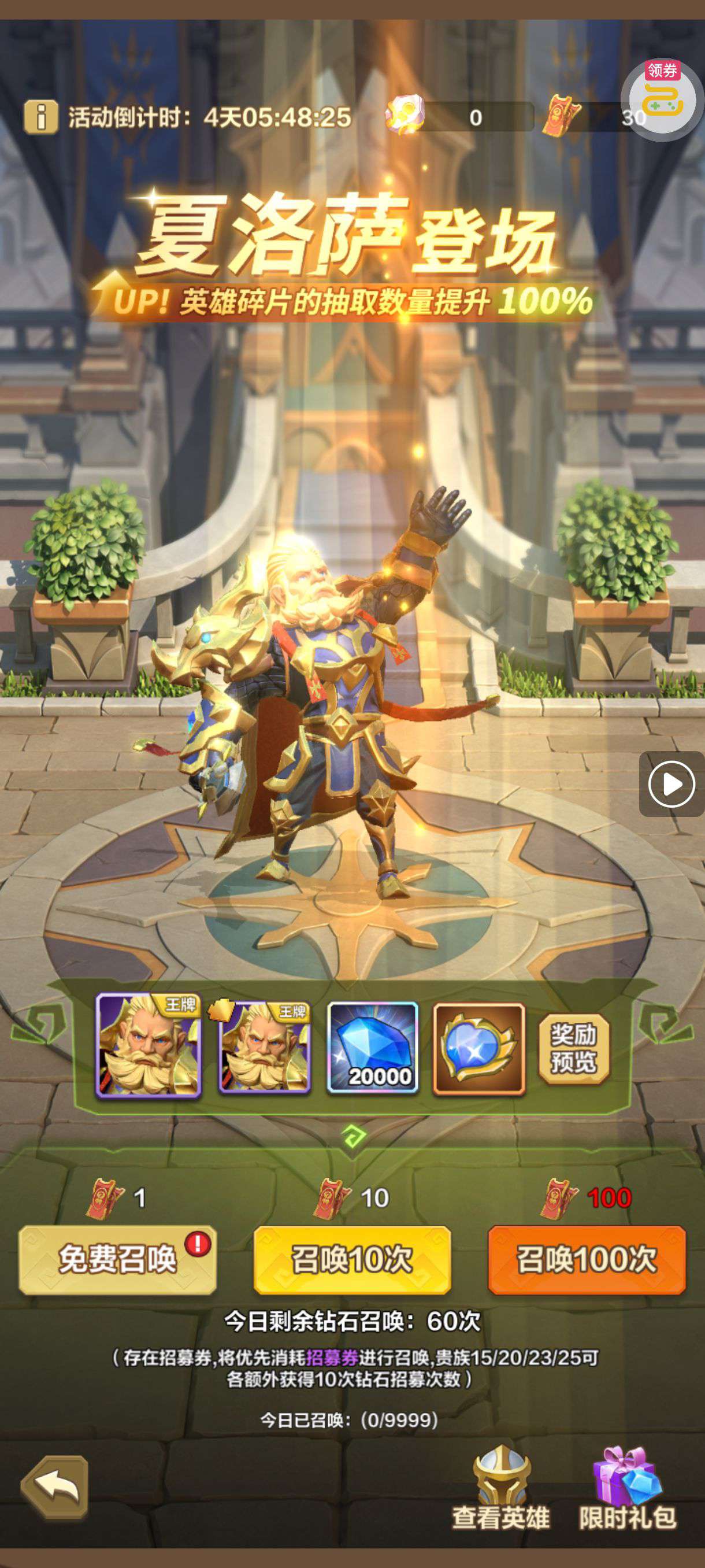 强化药剂*200、钻石招募币*20、金币*50W(每个账号限领一次)