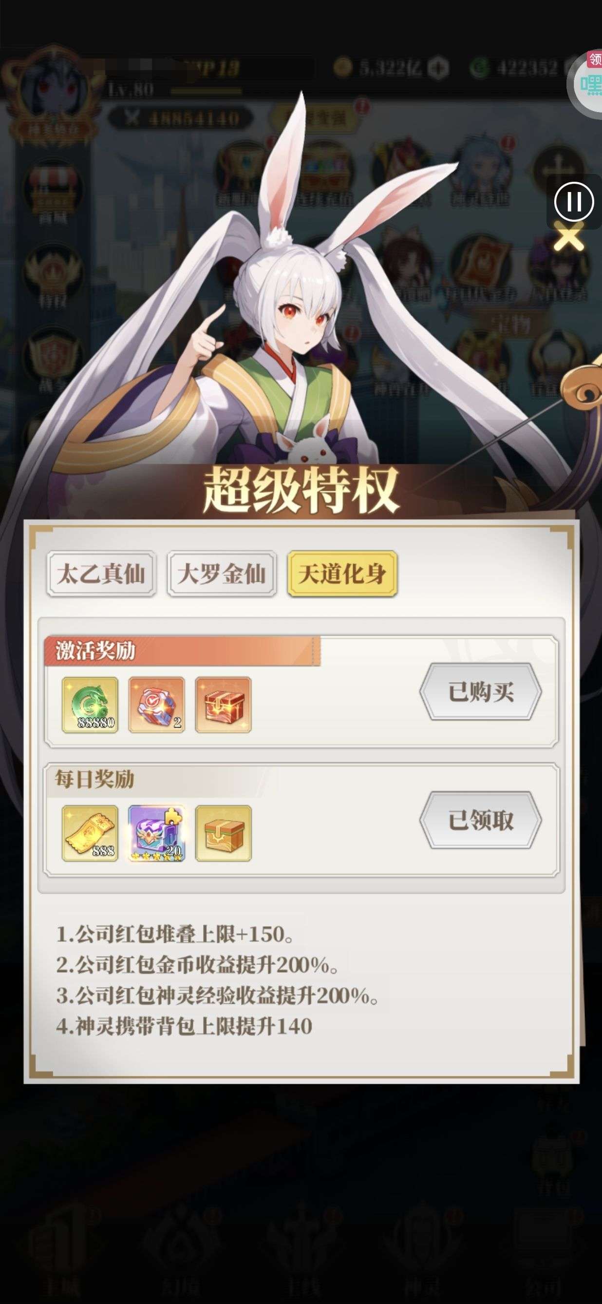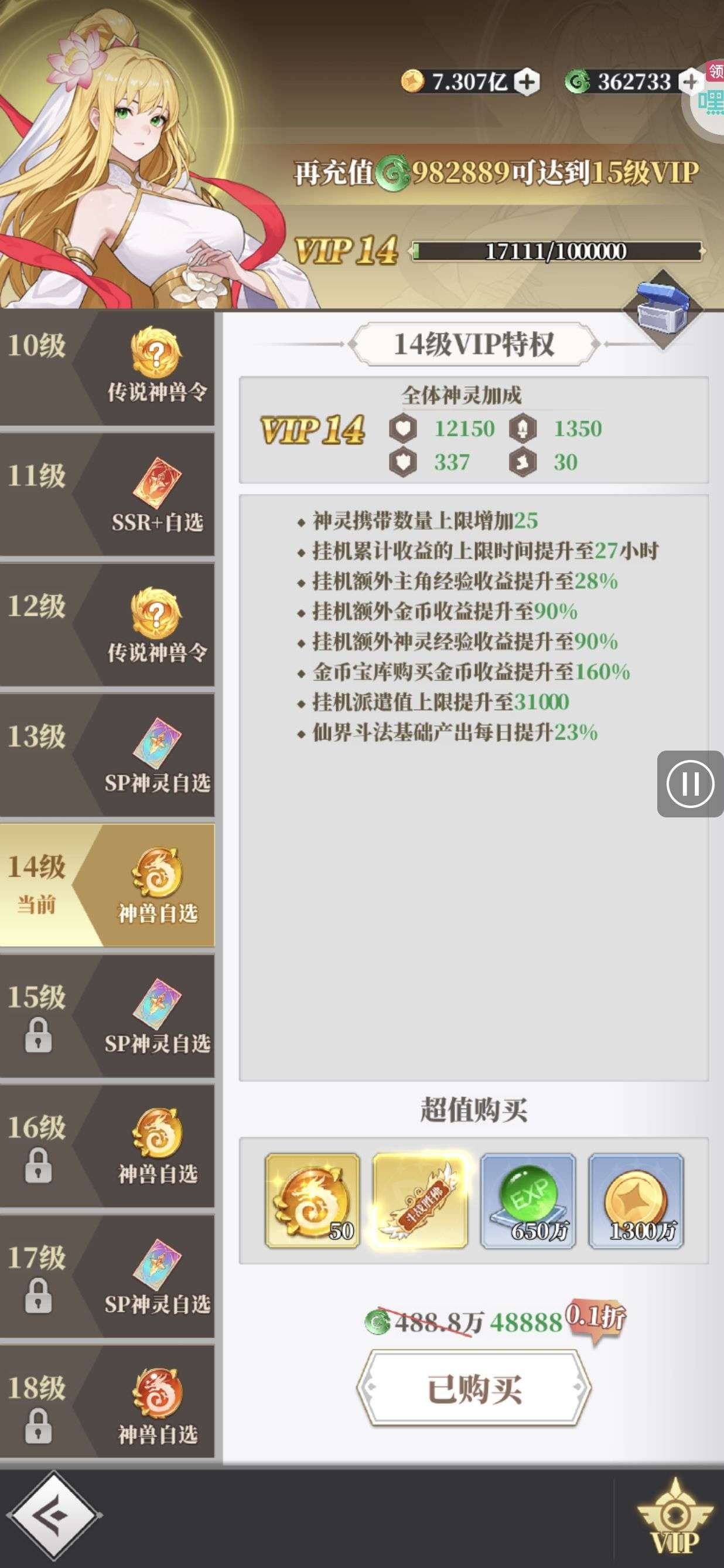 没时间玩了,现在V14,特权全满,每天领3000左右代金,根本花不完啊