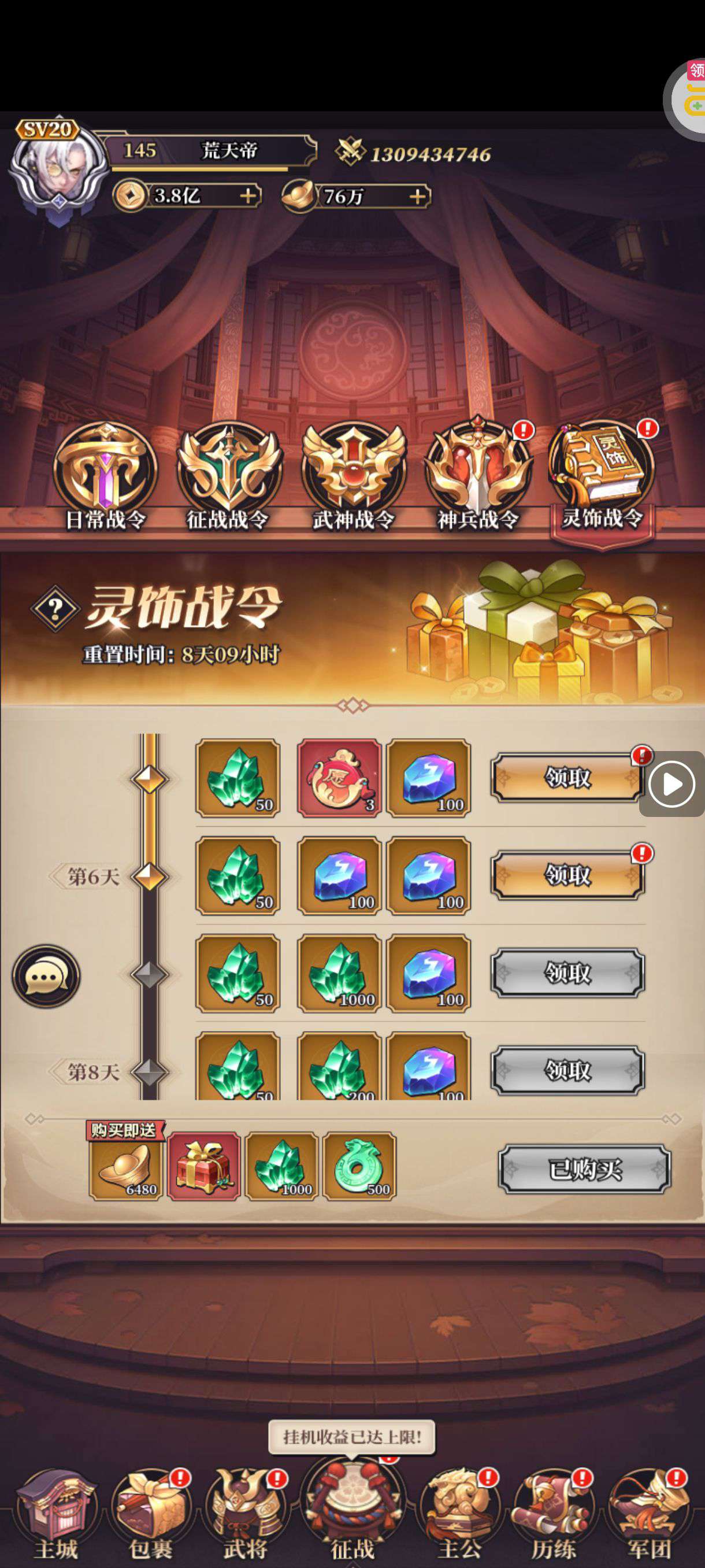 元宝*6480(每个账号限领一次)