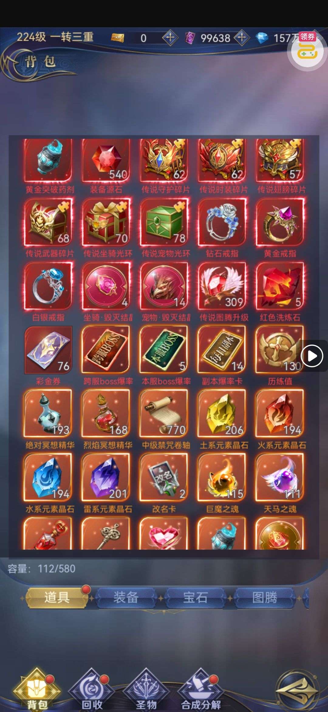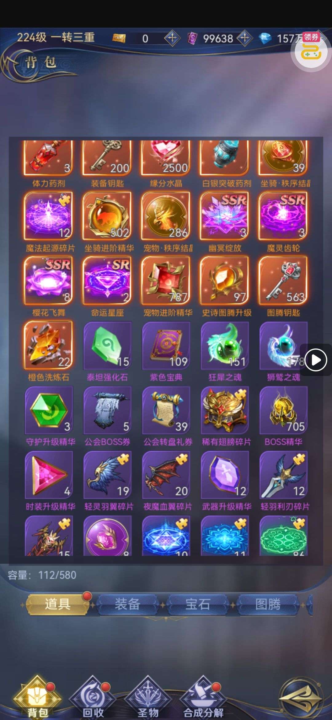 该角色累计充值239.64元,购买后不能再次交易,不支持转区,可以回收,回收金额仅计算该小号购买后的充值金额,不计算原有充值金额(如有其他游戏官方福利号需求请联系官方客服)