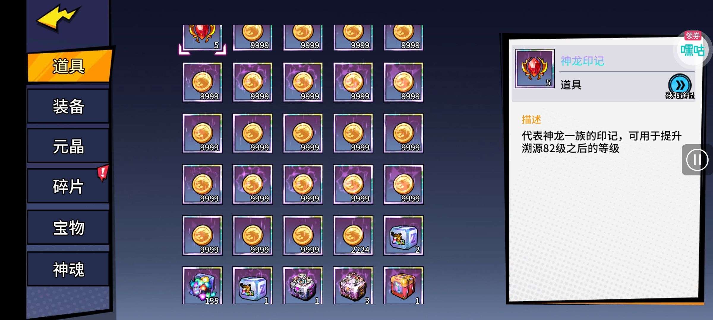 魂晶*888,魂师召唤券*10,武魂水晶*5(每个账号限领一次)