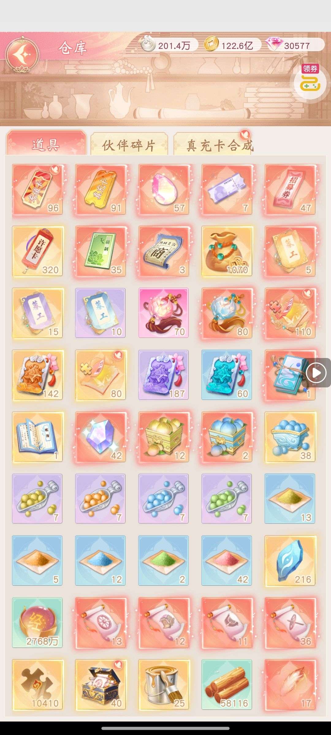 夺宝券*1、比武令*1、5星随机将魂*10(每个账号限领一次)