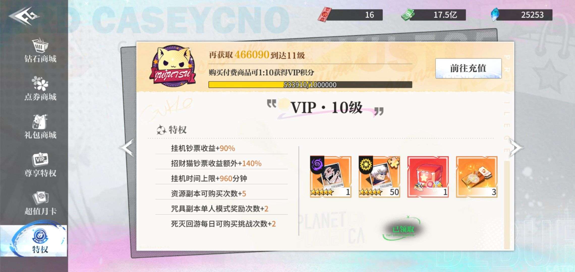基本彩二混沌差狗粮,乙骨忧太今天刚出,抽了一个本体,亡者甚尔差一点狗粮彩一