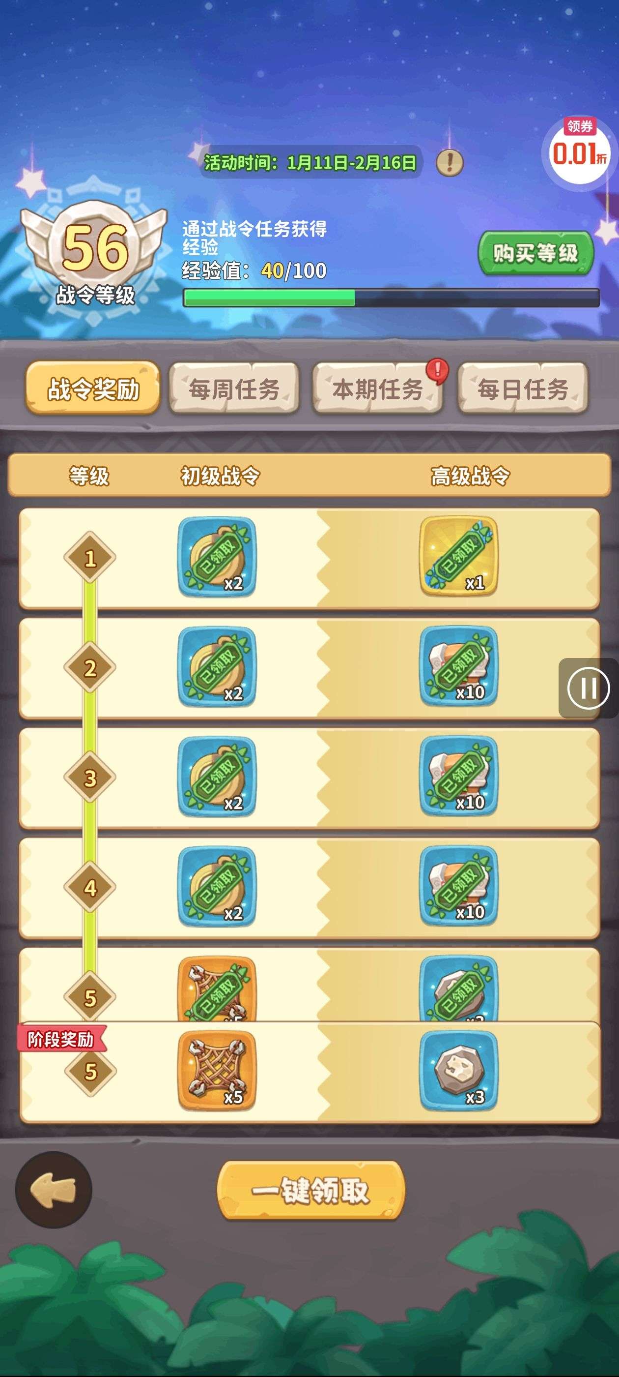 1元充值卡*100、招募令*10、青铜宝箱*5(每个账号限领一次)