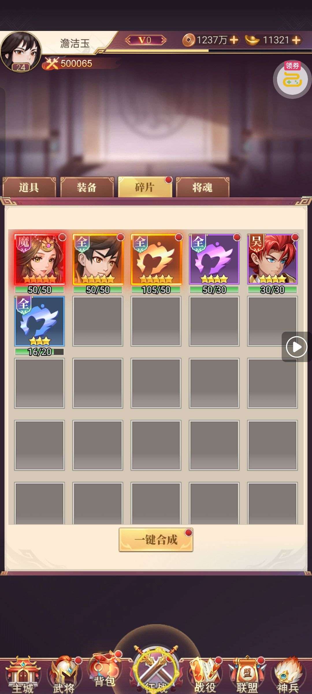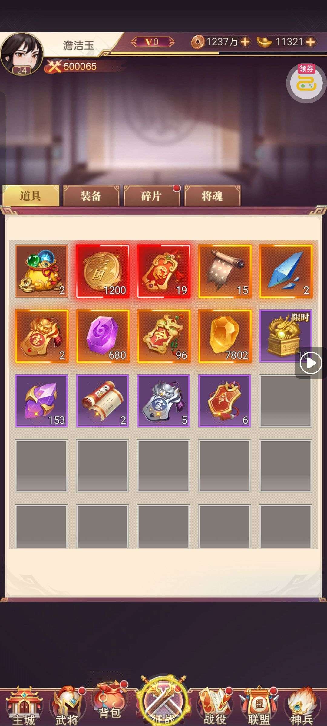 第一天,不想玩了,背包附图,里头的三国币不是限时的