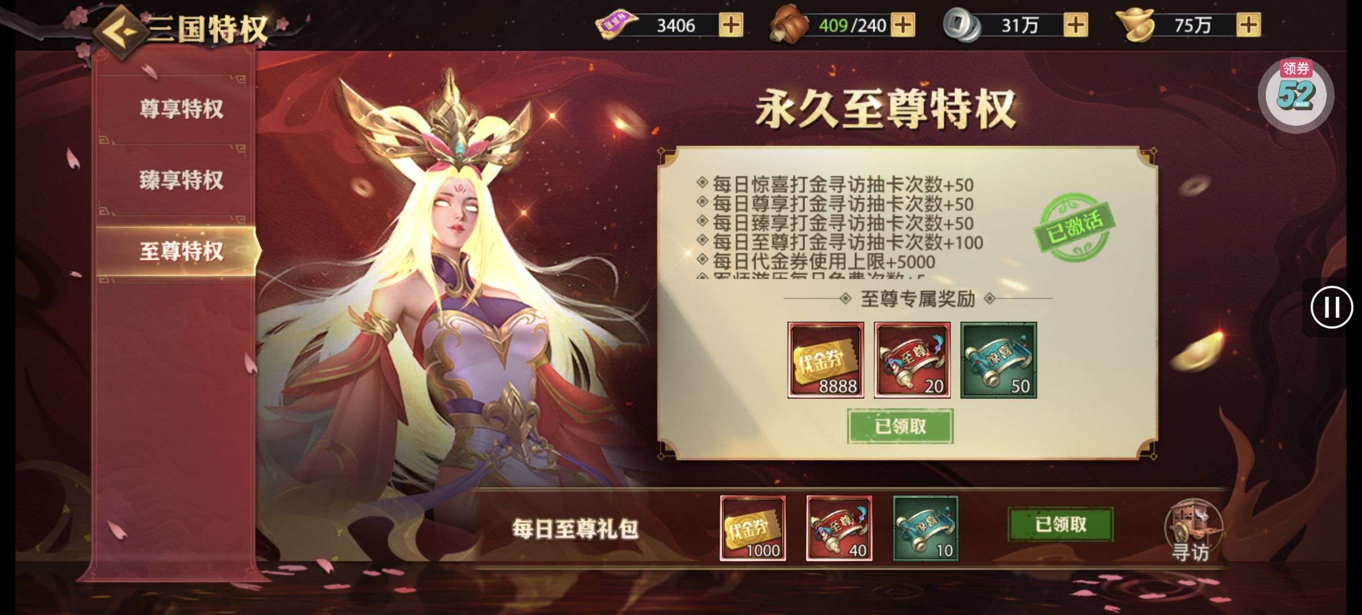 强化药剂*200、钻石招募币*20、金币*50W(每个账号限领一次)