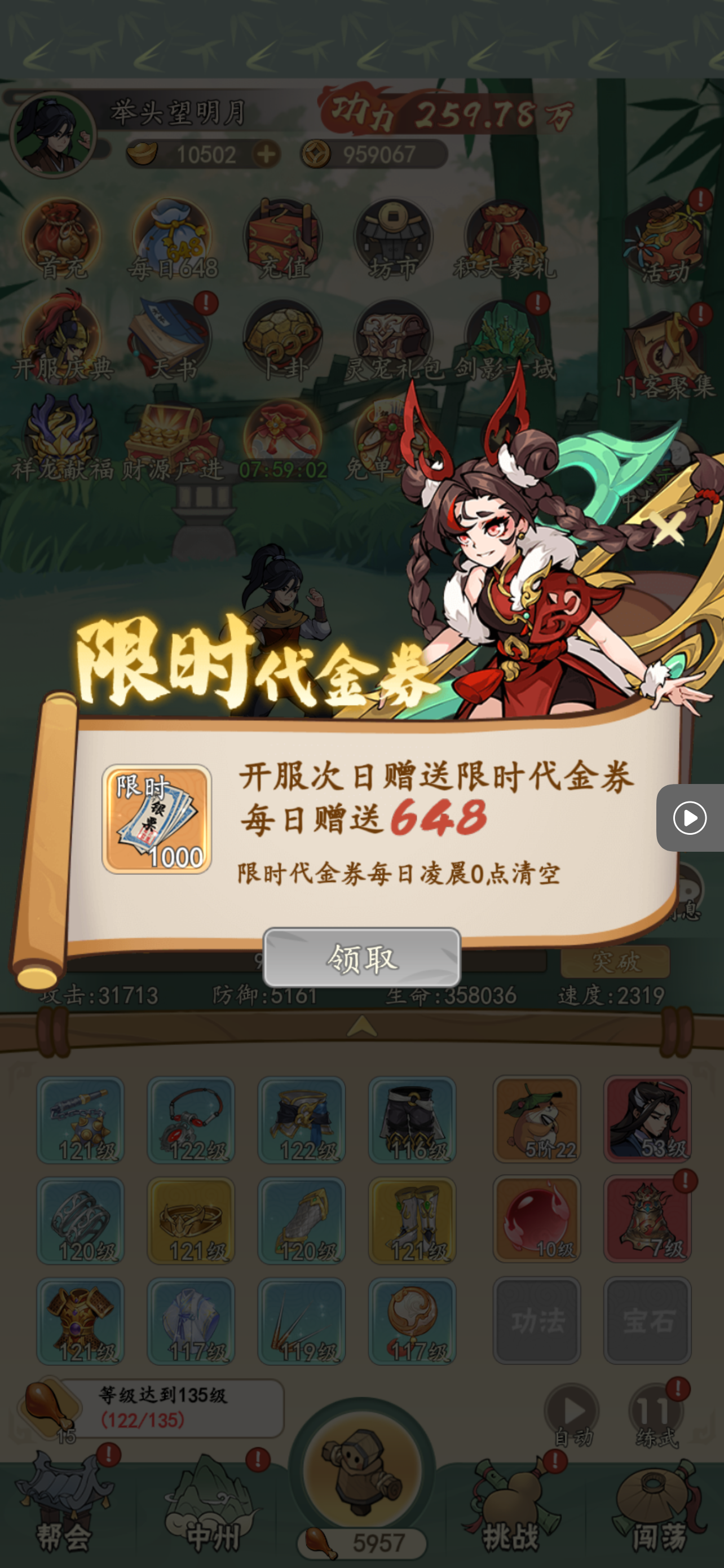 强化药剂*200、钻石招募币*20、金币*50W(每个账号限领一次)