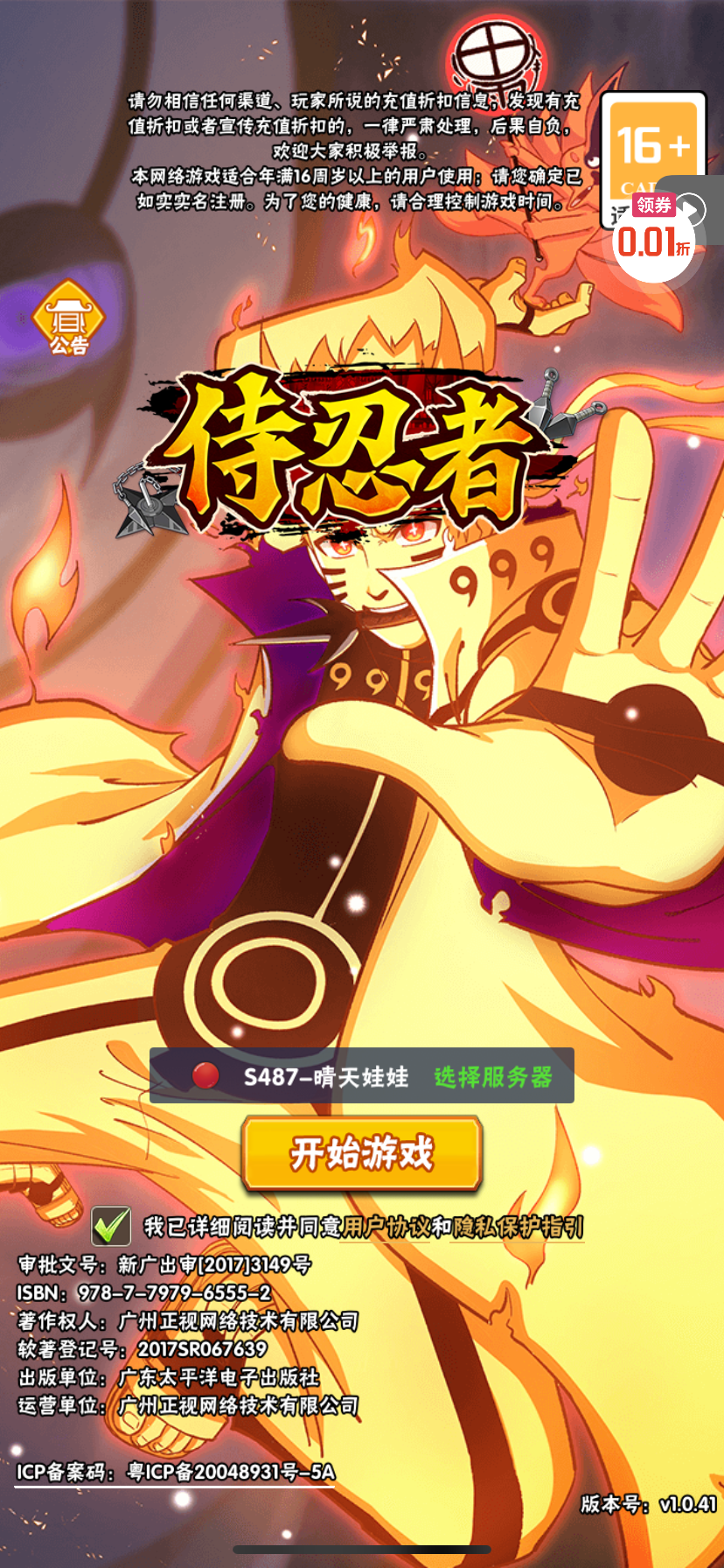 夺宝券*1、比武令*1、5星随机将魂*10(每个账号限领一次)