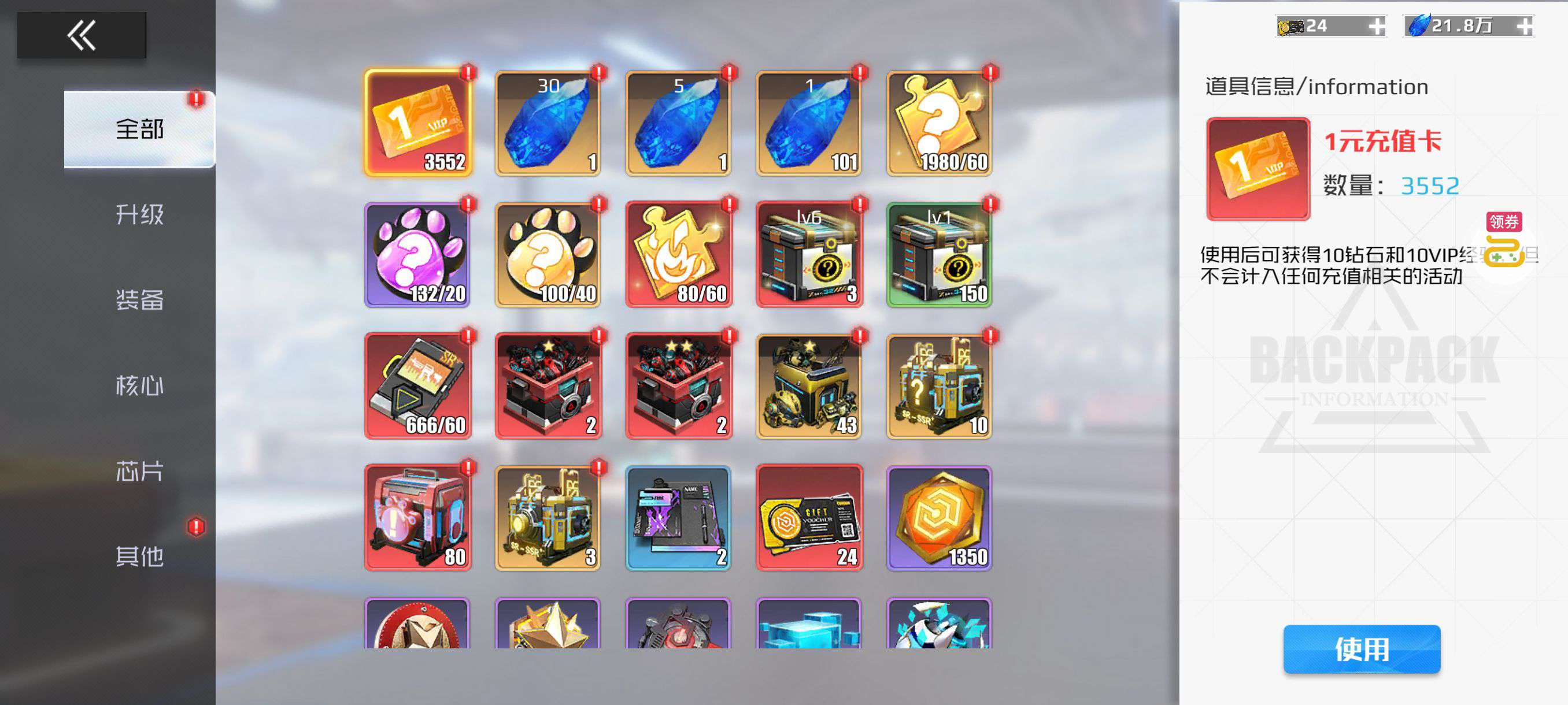 芯片熔炼石*1、离子探针*50、净化金属*50(每个账号限领一次)