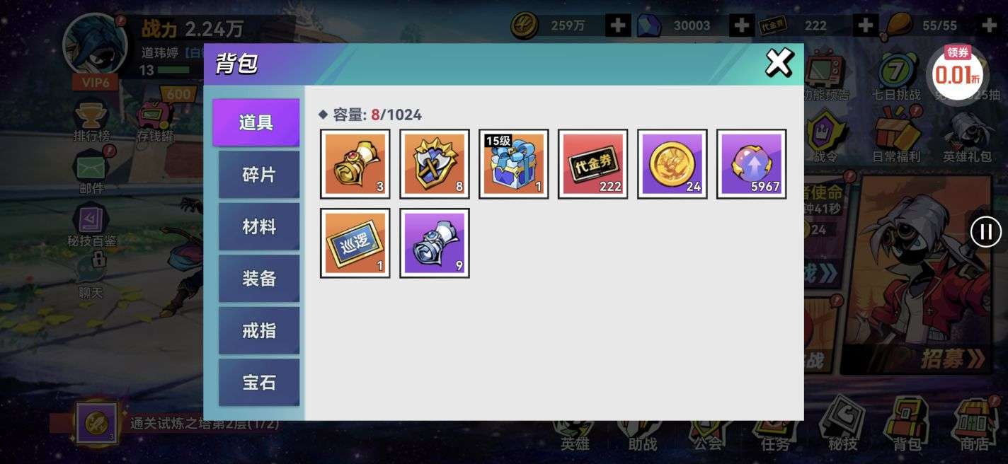 强化药剂*200、钻石招募币*20、金币*50W(每个账号限领一次)