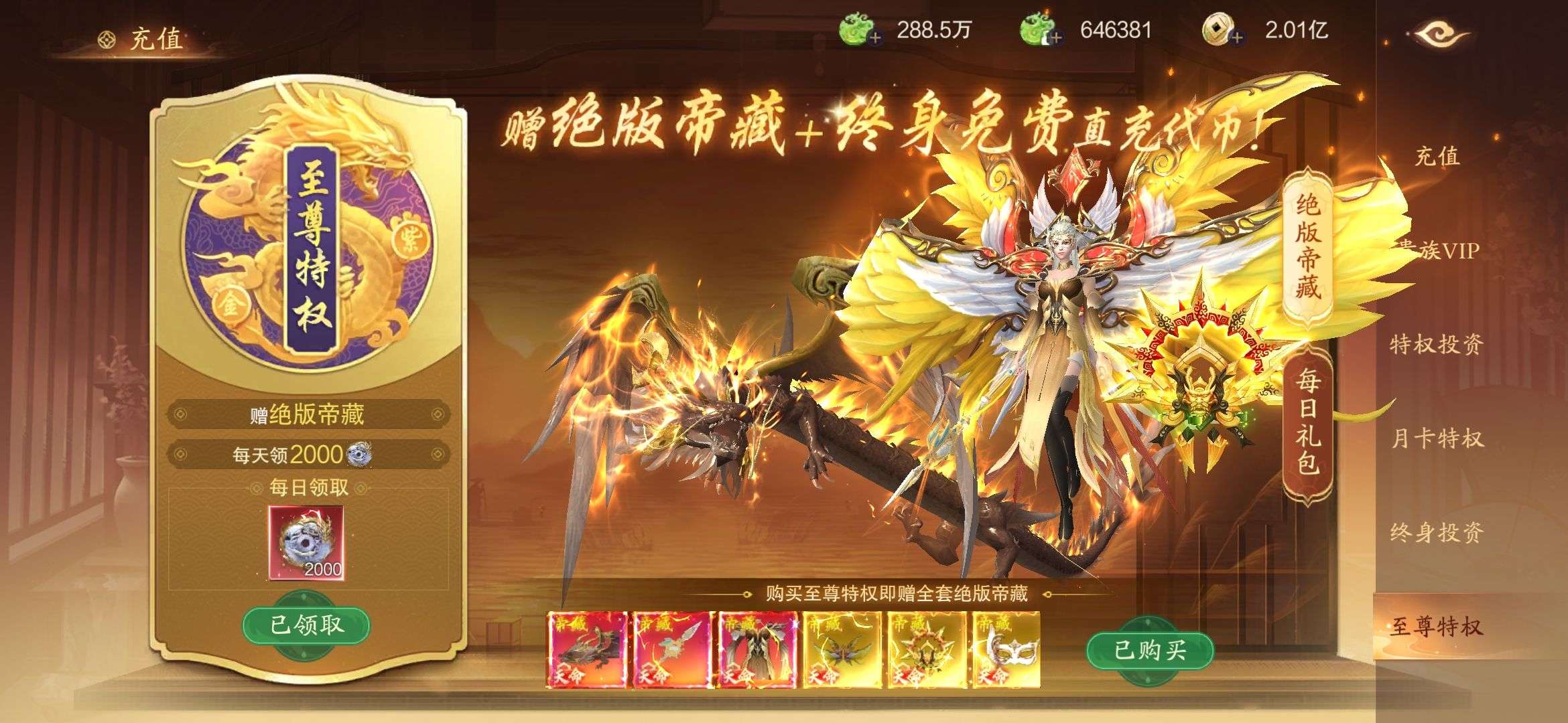 至尊特权各种激活的特权都有