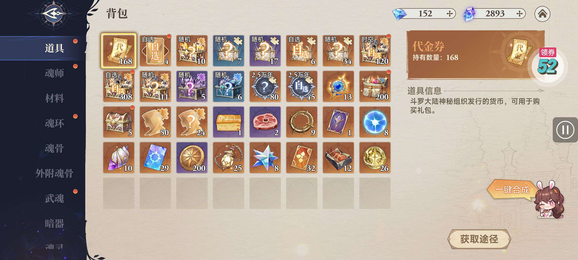 魂晶*888,魂师召唤券*10,武魂水晶*5(每个账号限领一次)