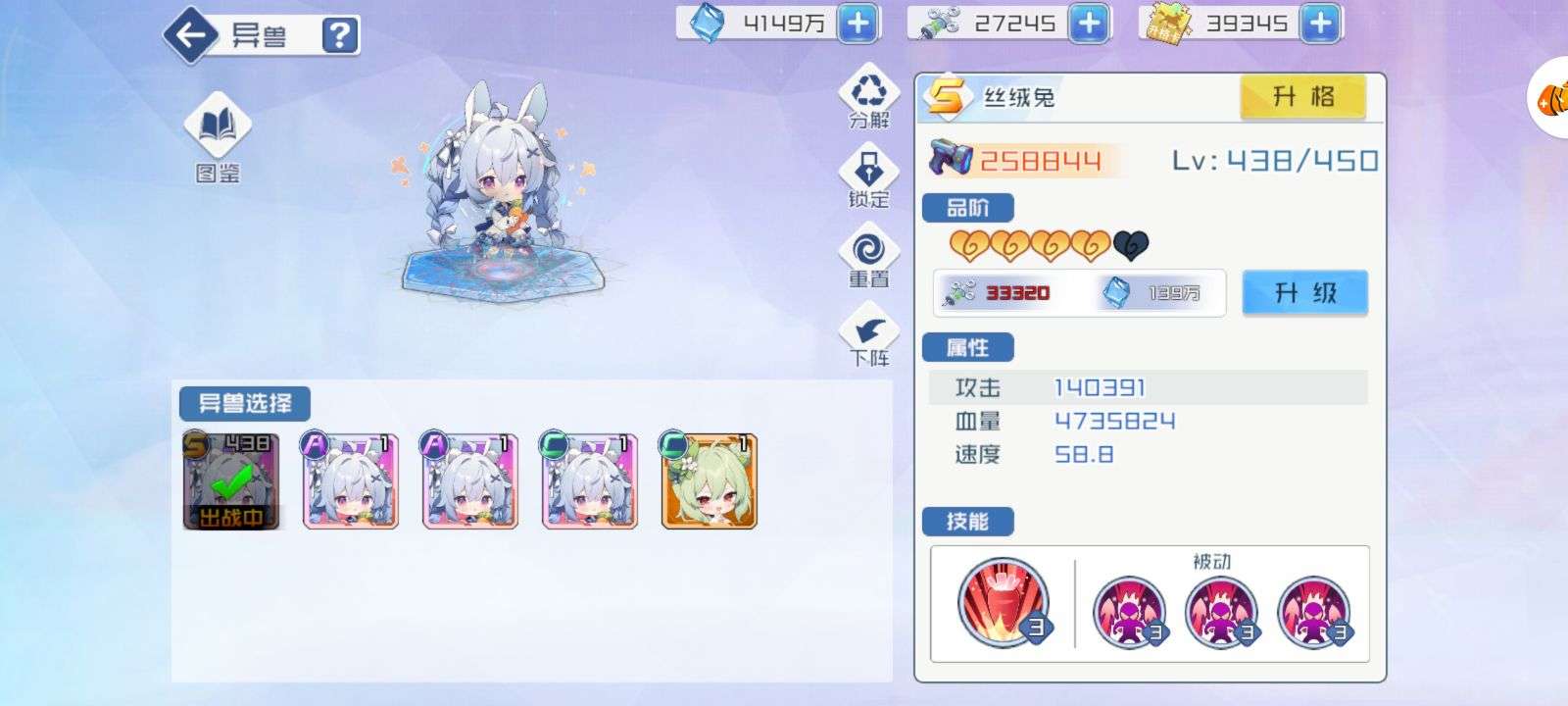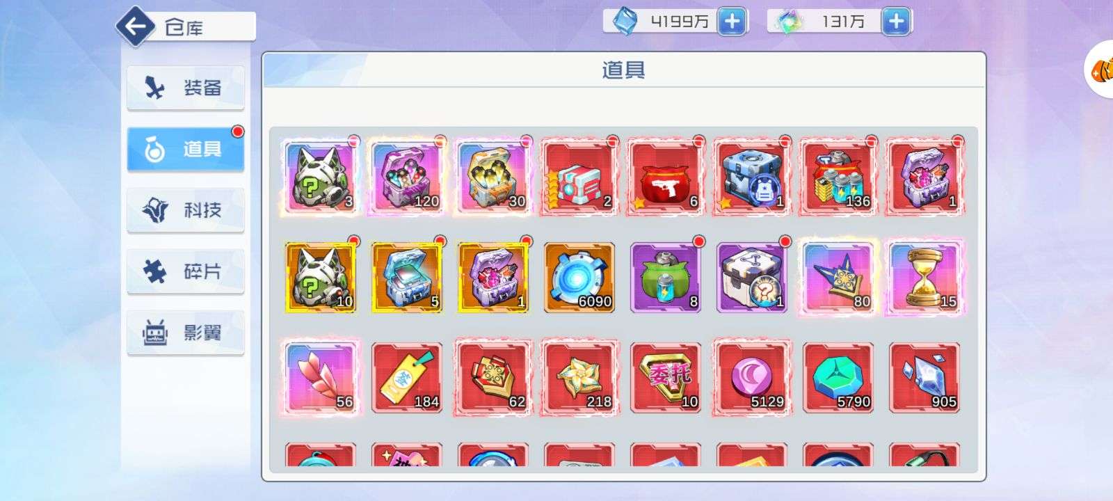等级:88级,战力:483W,贵族20(满),水晶:132W,皮肤:3个,招募卡:62张,占星卡:80张,高级许愿签:184张,幻彩异兽自选箱×3,橙色异兽自选箱×10,四系彩金胚胎自选箱×120以及各种物资和装备箱子