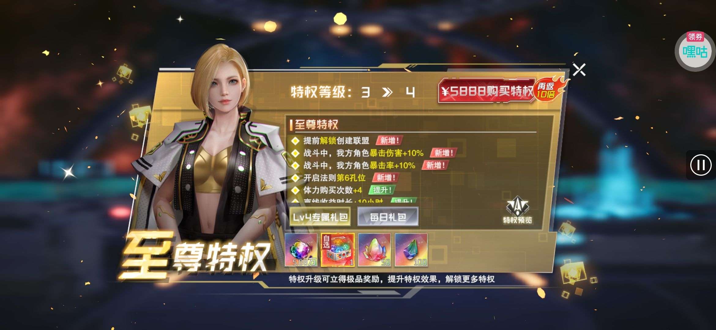 芯片熔炼石*1、离子探针*50、净化金属*50(每个账号限领一次)