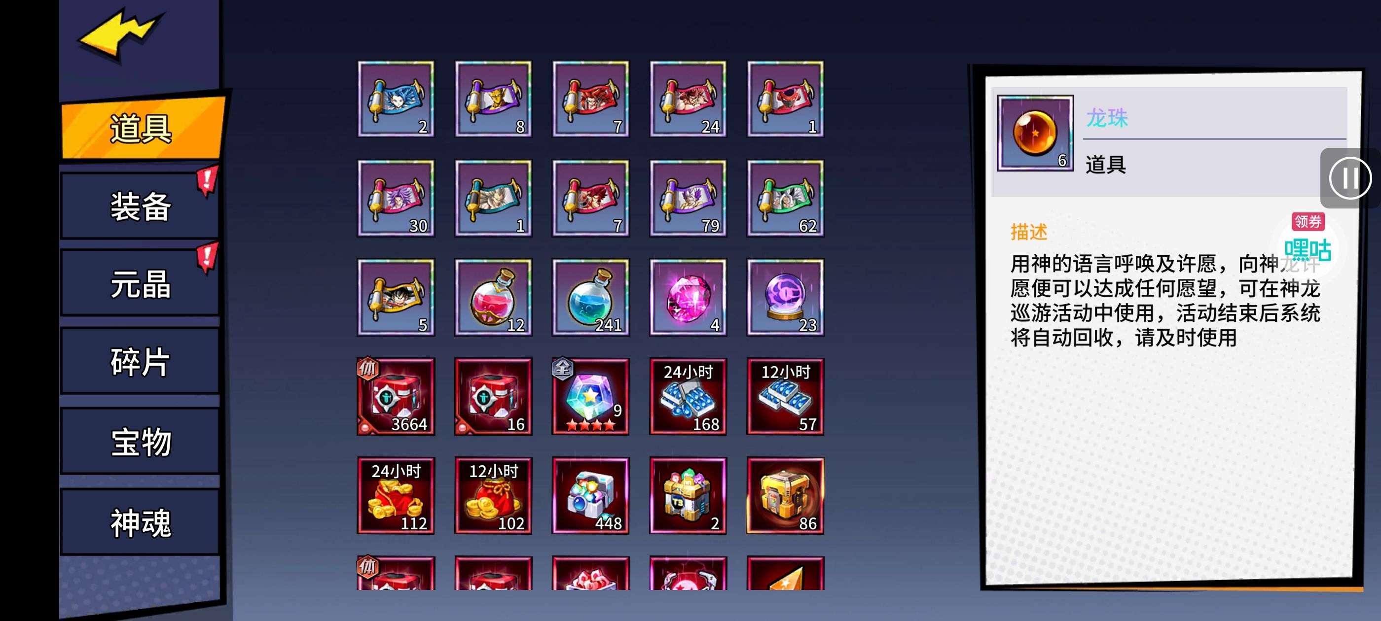 魂晶*888,魂师召唤券*10,武魂水晶*5(每个账号限领一次)