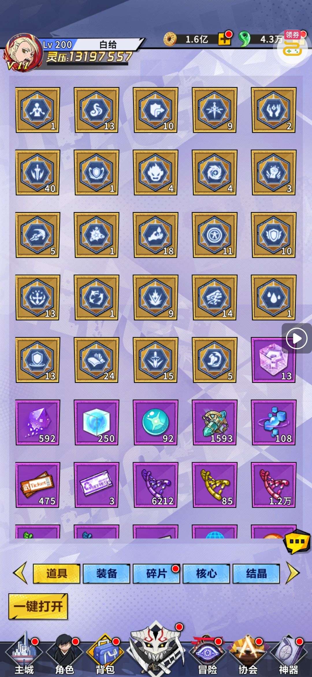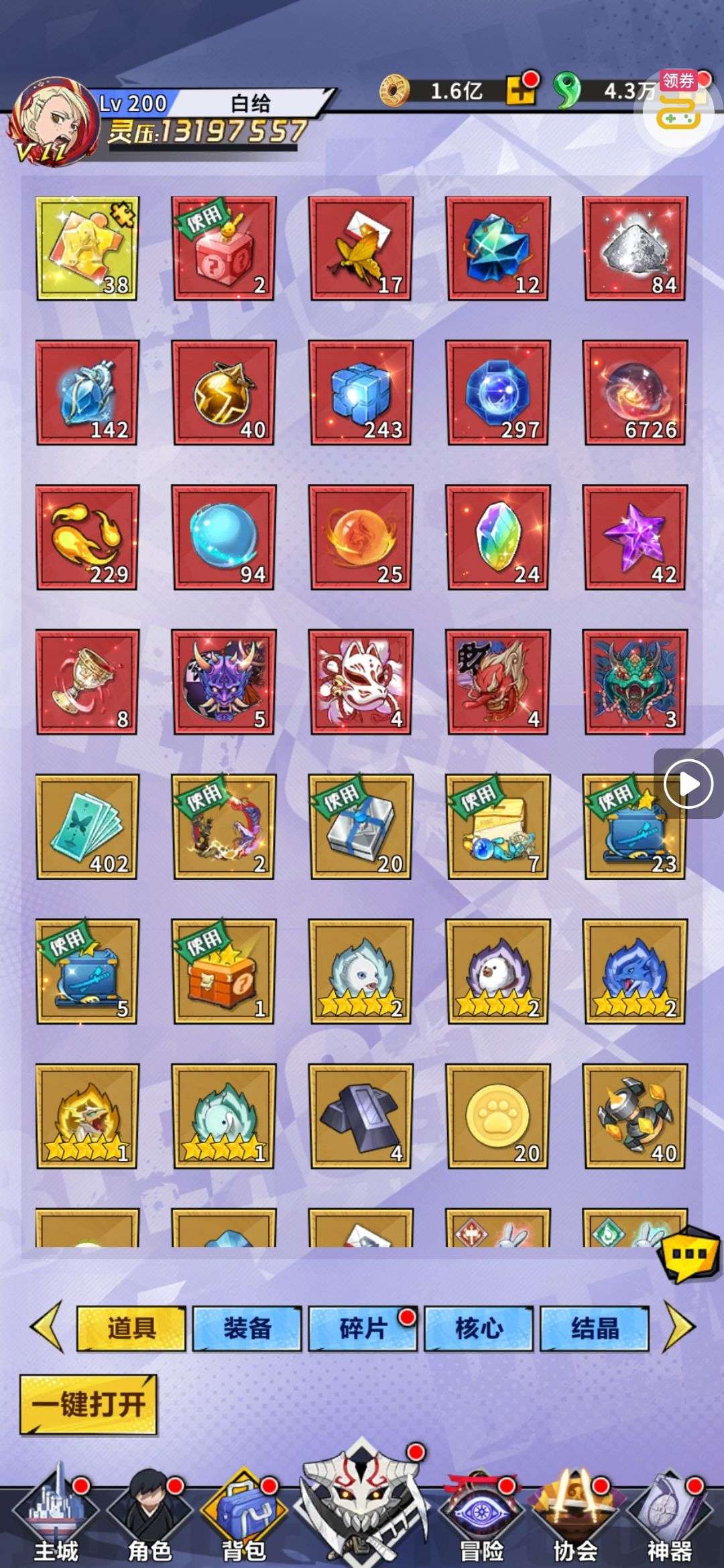 进阶丹*200,铜钱*100000,查克拉*100000(每个账号限领一次)