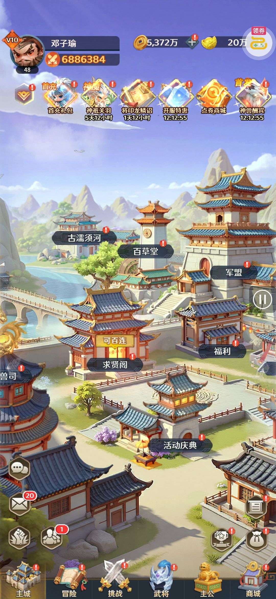 强化药剂*200、钻石招募币*20、金币*50W(每个账号限领一次)