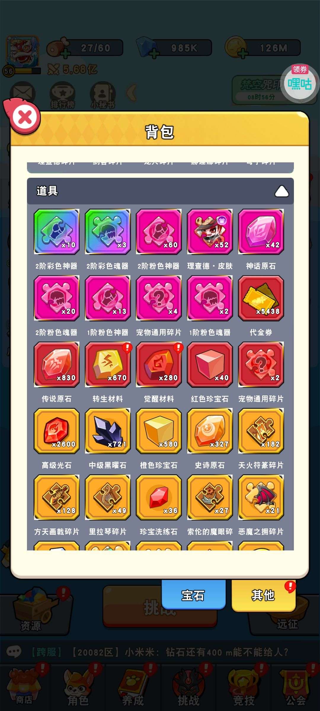 强化药剂*200、钻石招募币*20、金币*50W(每个账号限领一次)