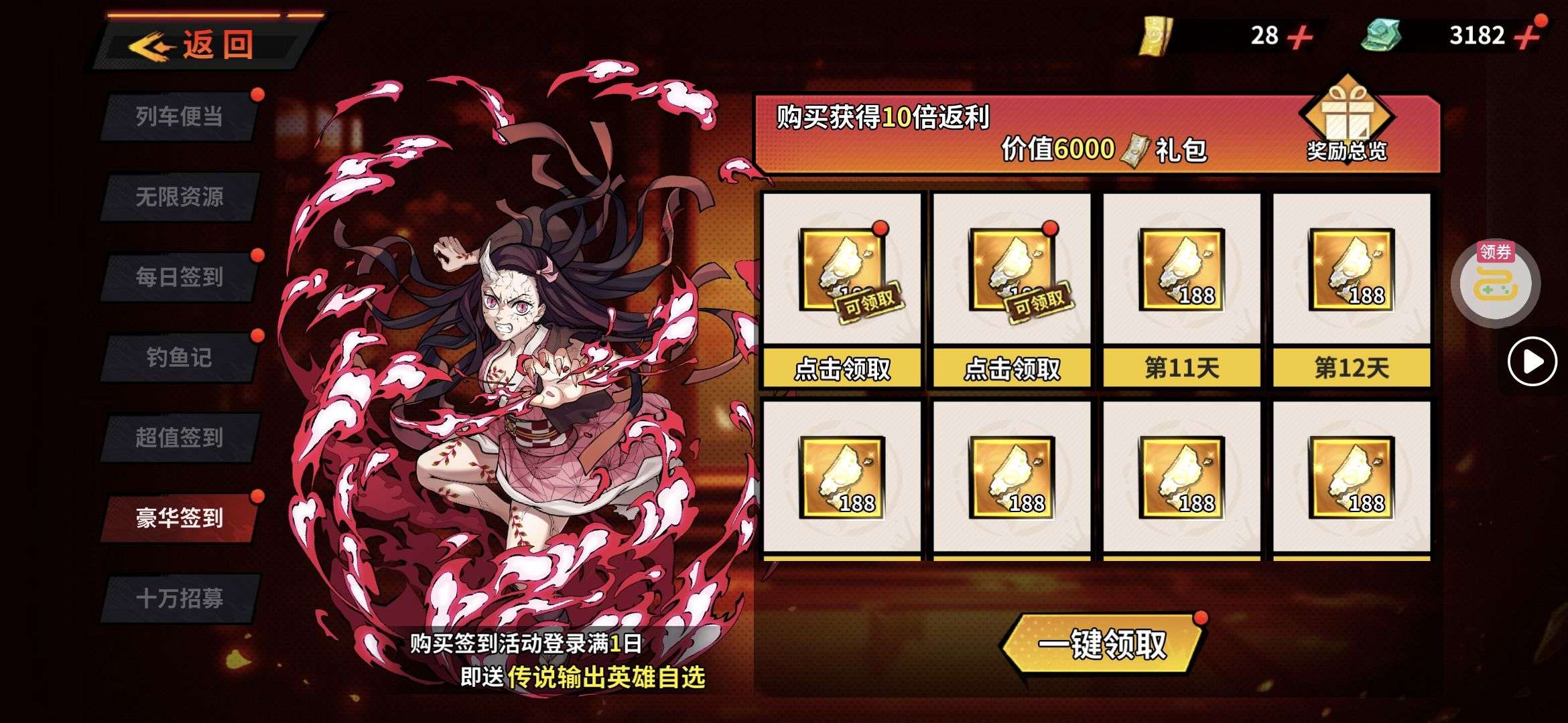强化药剂*200、钻石招募币*20、金币*50W(每个账号限领一次)