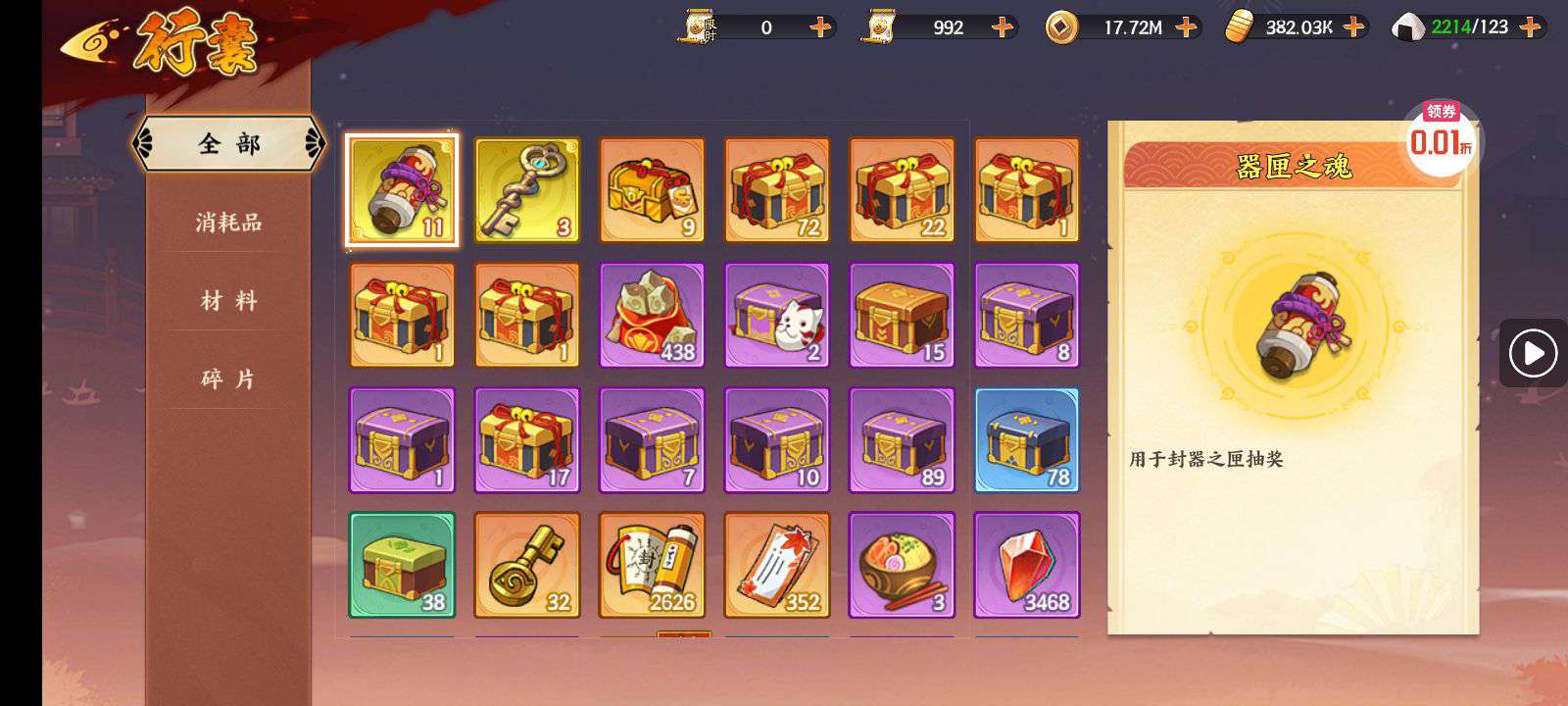 进阶丹*200,铜钱*100000,查克拉*100000(每个账号限领一次)