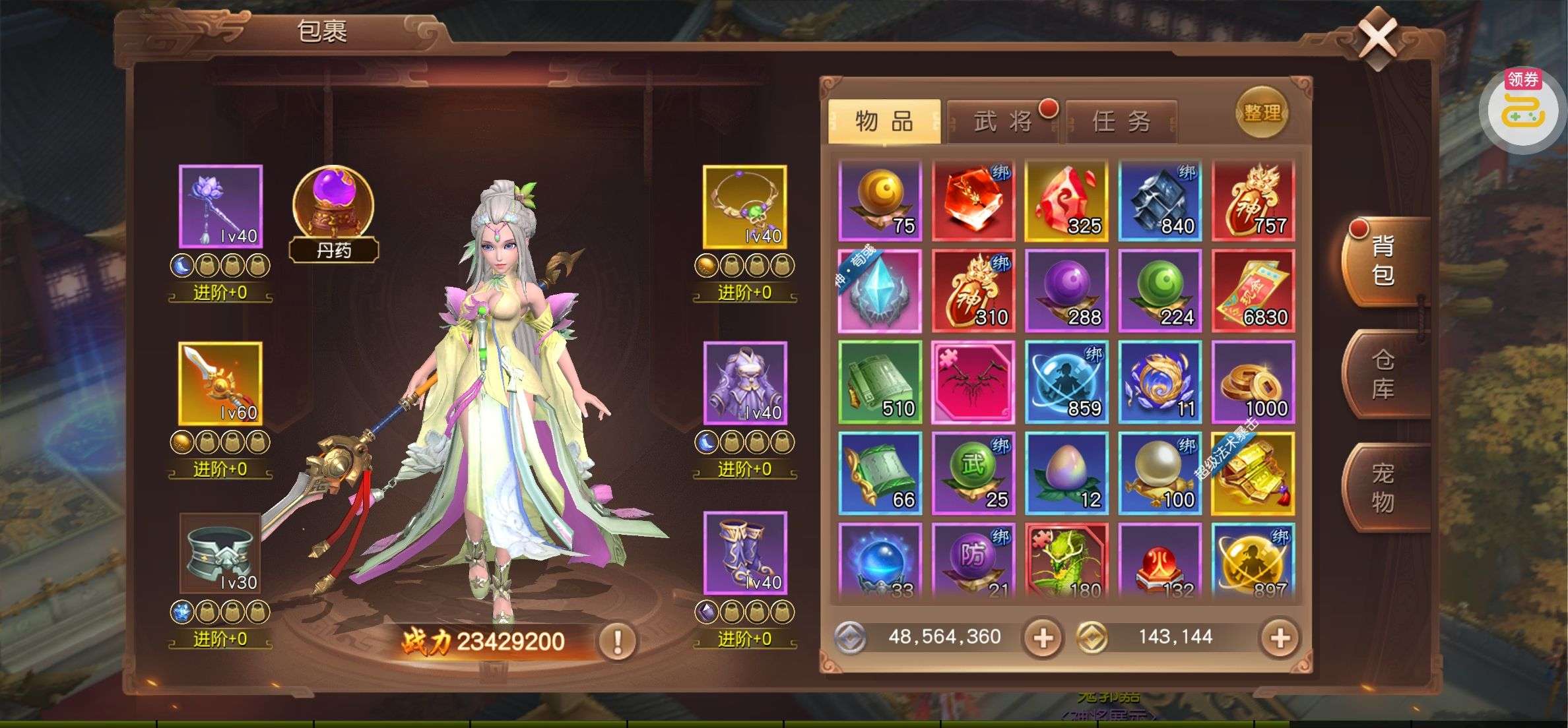 夺宝券*1、比武令*1、5星随机将魂*10(每个账号限领一次)