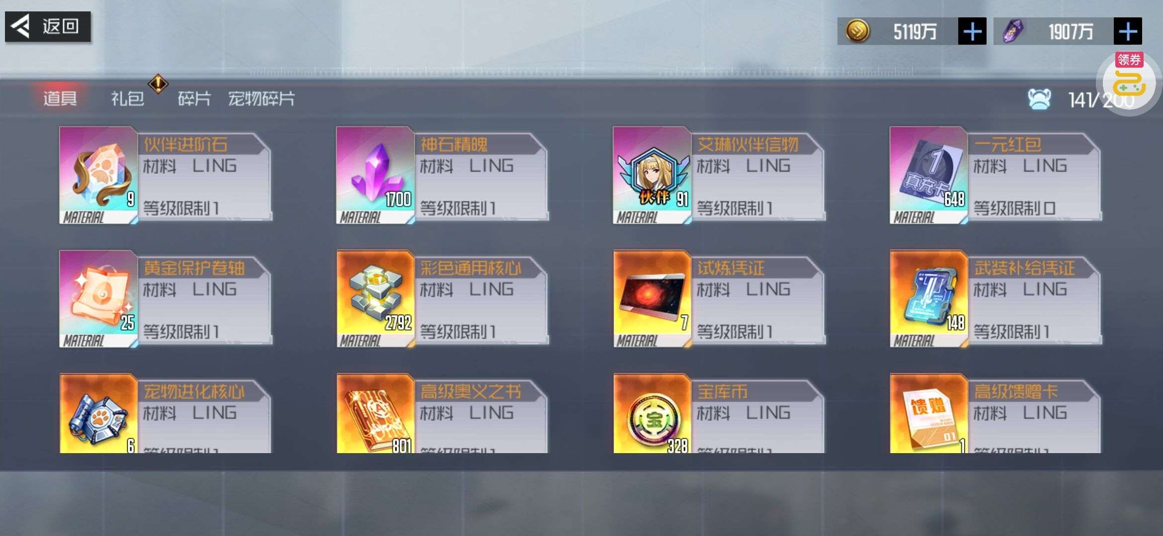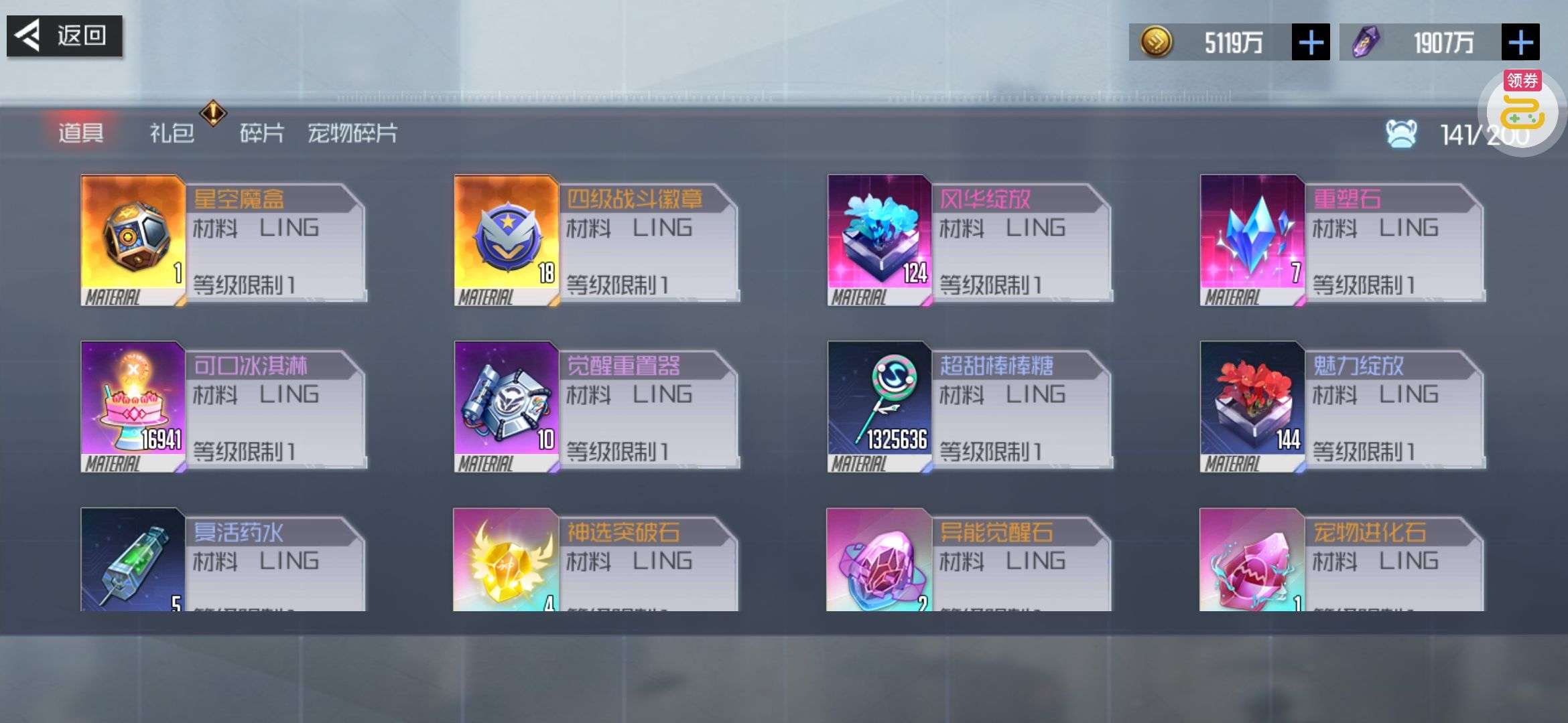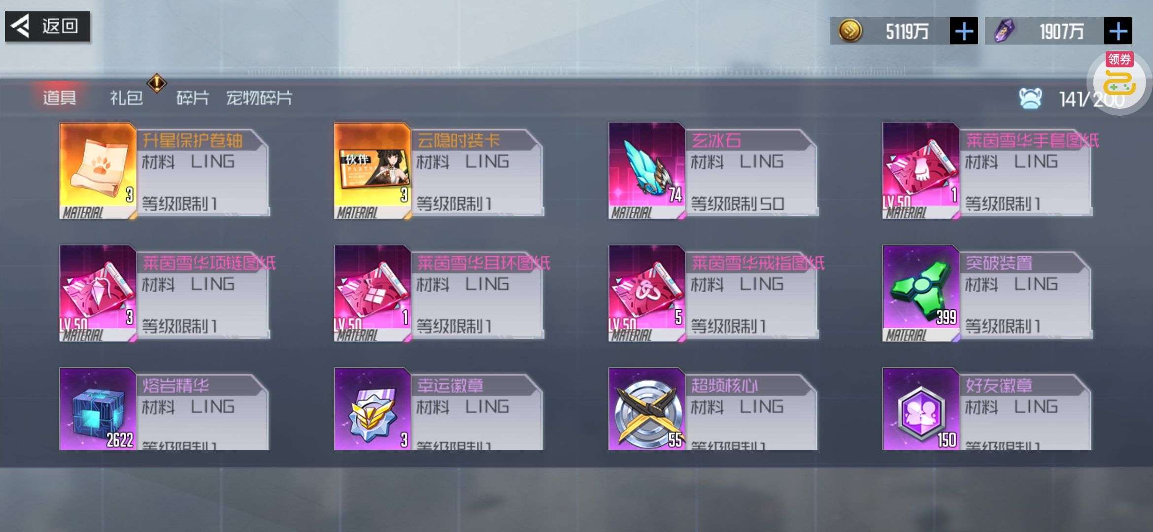 芯片熔炼石*1、离子探针*50、净化金属*50(每个账号限领一次)
