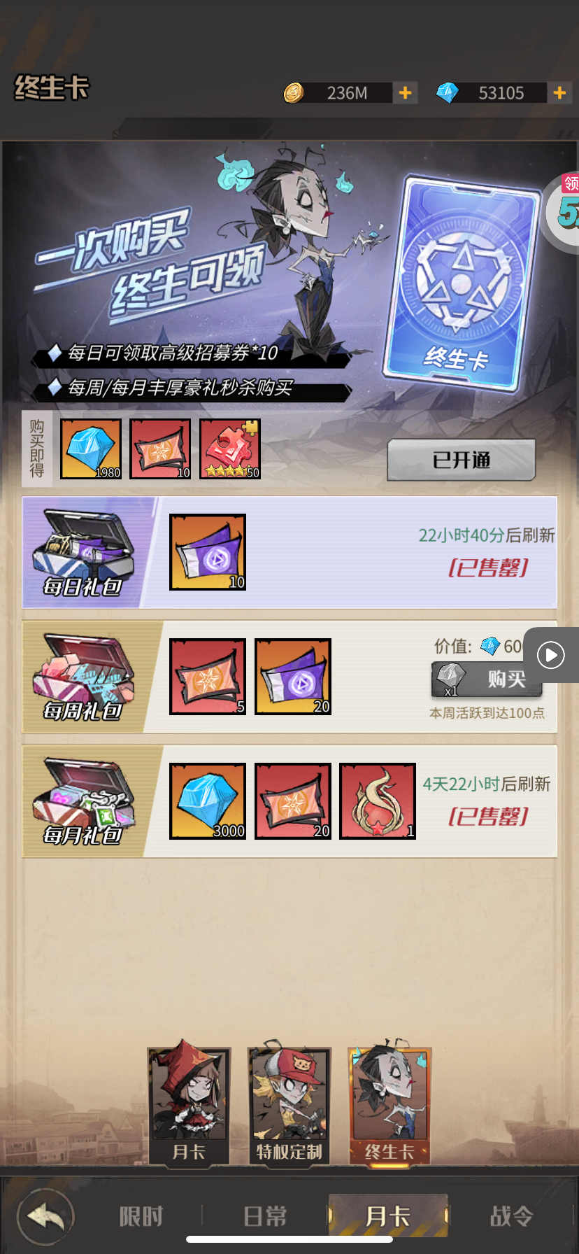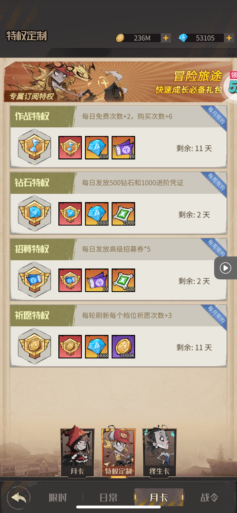 所有特权都买了,心愿劵还有300