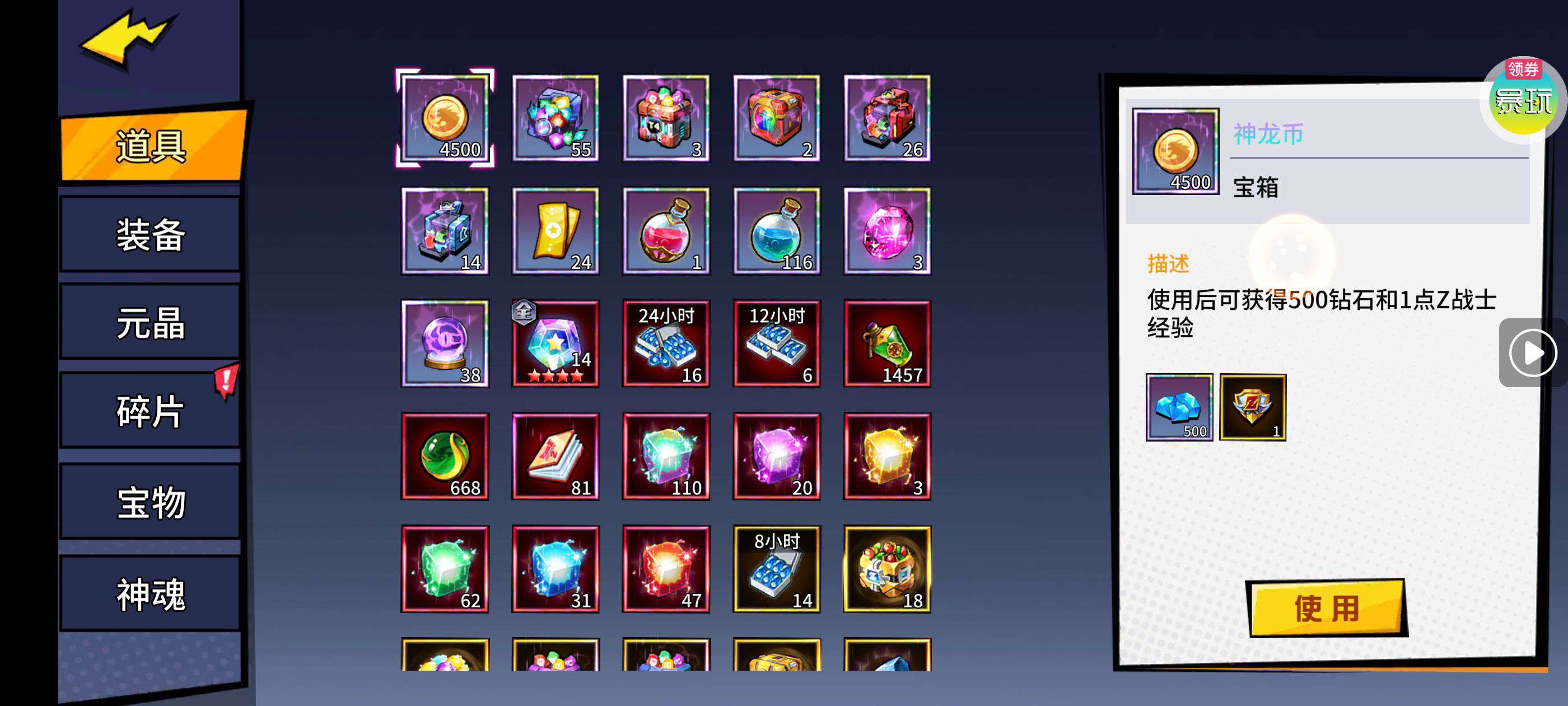 魂晶*888,魂师召唤券*10,武魂水晶*5(每个账号限领一次)